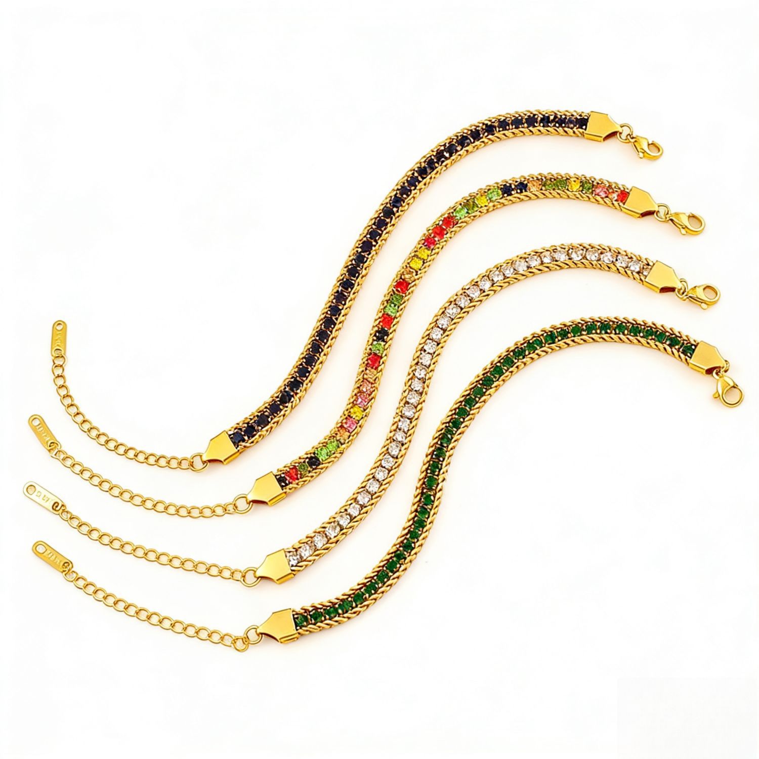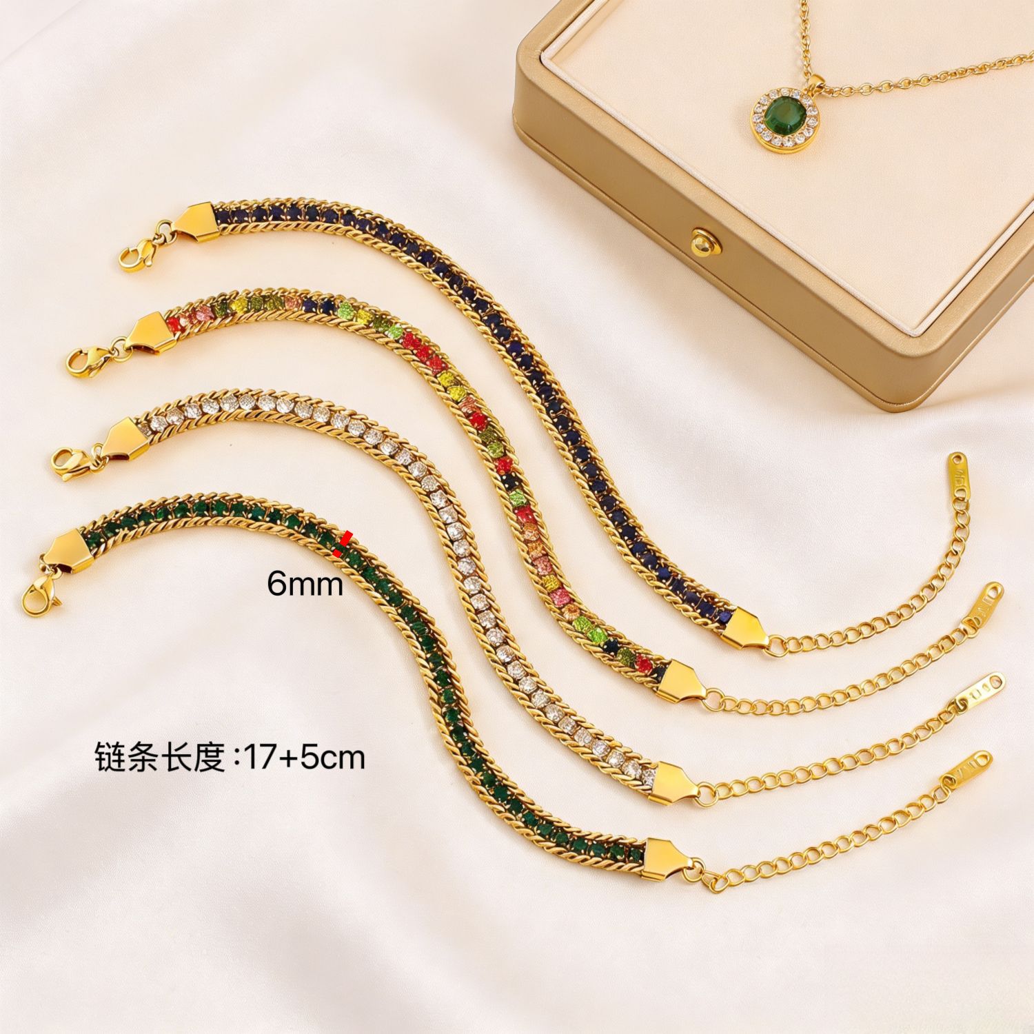 彩钻锆石手链跨境潮流不锈钢彩钻锆石手链轻奢优雅手环小众个性网球链手饰