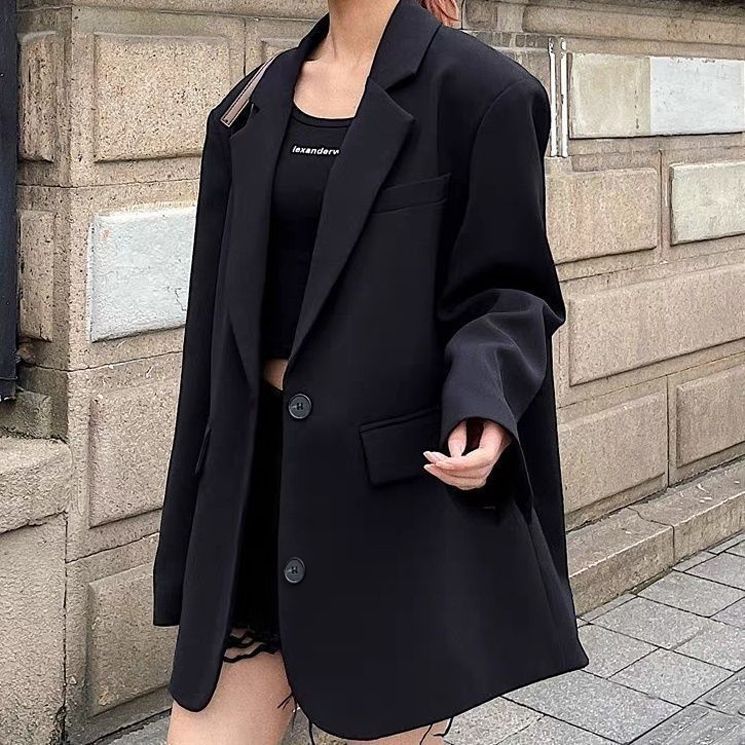 黑色西装外套夏款春秋新款气质休闲小个子宽松韩版西服百搭上衣