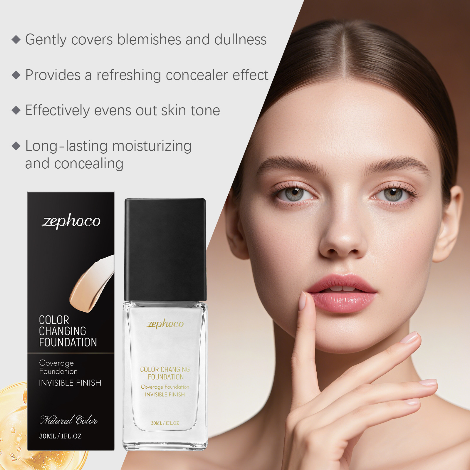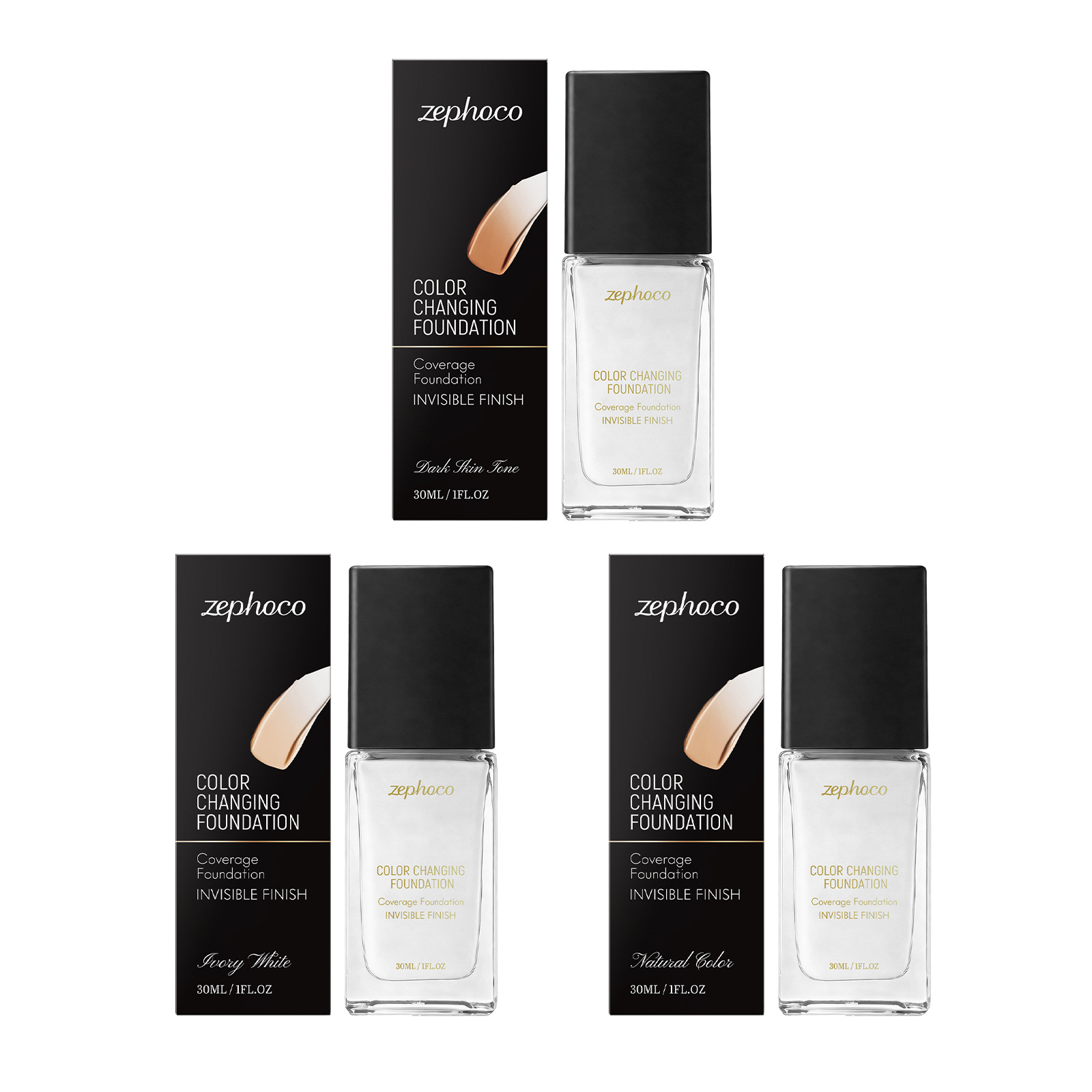 zephoco遮瑕变色粉底液系列 自然轻薄水润保湿不卡粉打造清透底妆