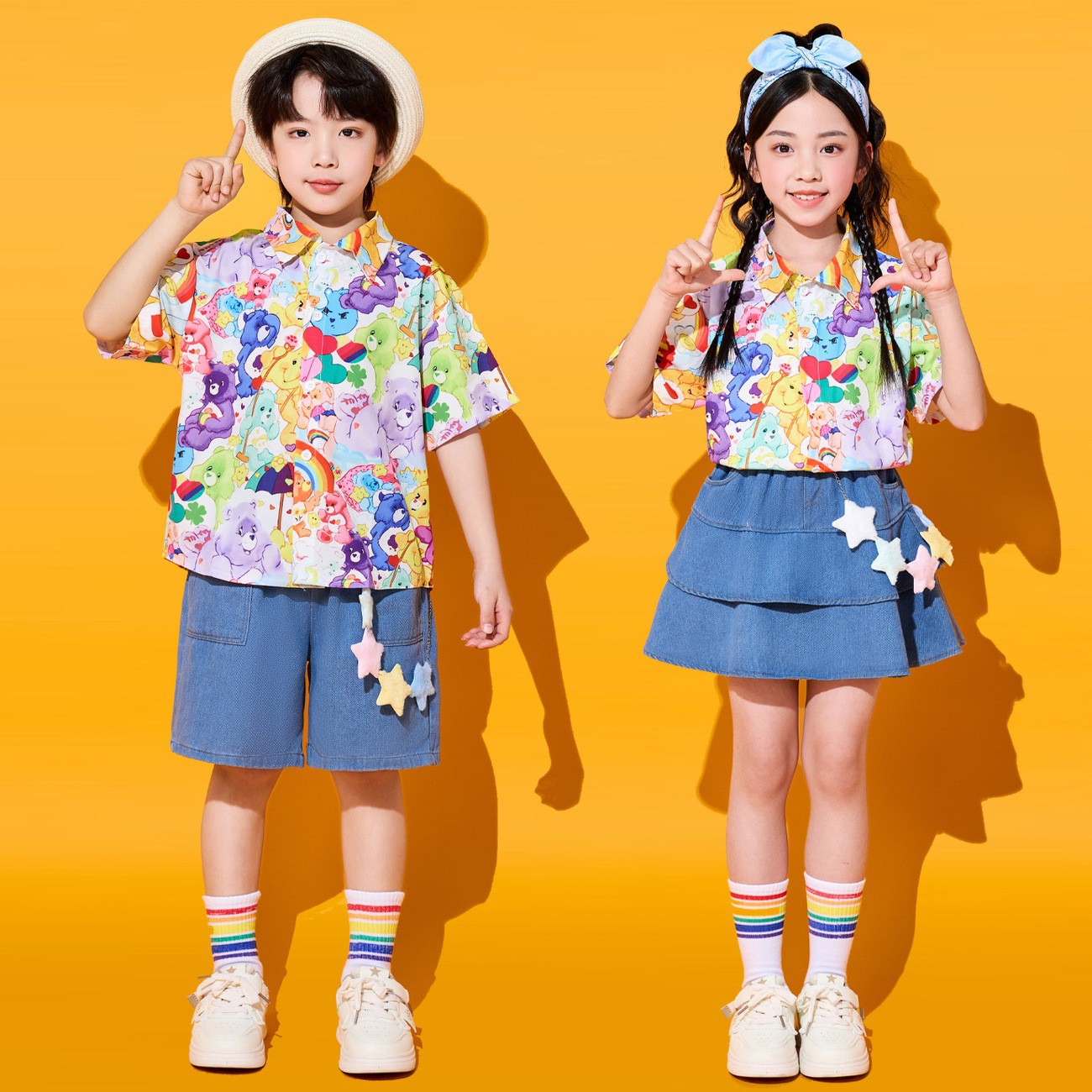 | 颜色 | 男款彩色上衣+白色短裤+袜子+发带+五星挂饰 | 颜色 | 男款彩色上衣+牛仔短裤+袜子+发带+五星挂饰 |