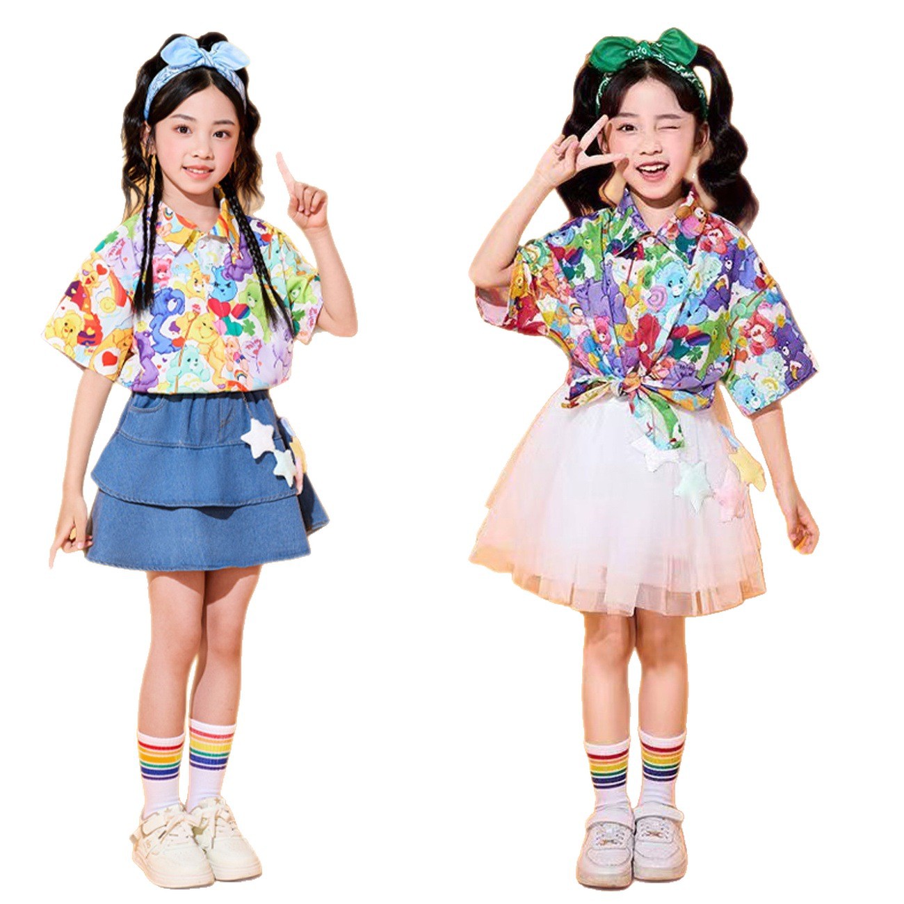 | 颜色 | 女款彩色短袖+白色纱裙+袜子+五星挂饰+方巾 | 颜色 | 女款彩色短袖+牛仔短裤+袜子+五星挂饰+方巾 |