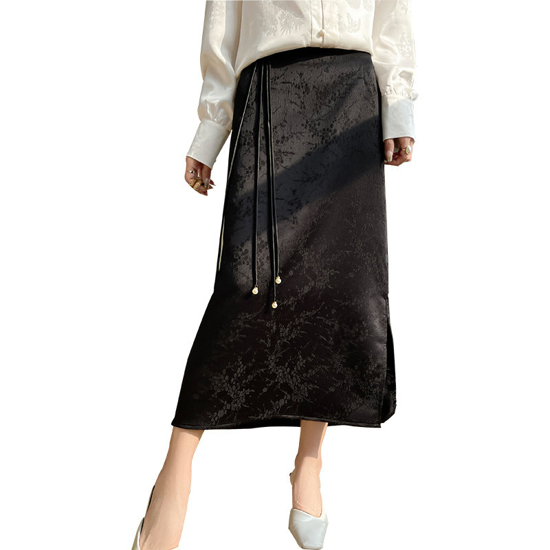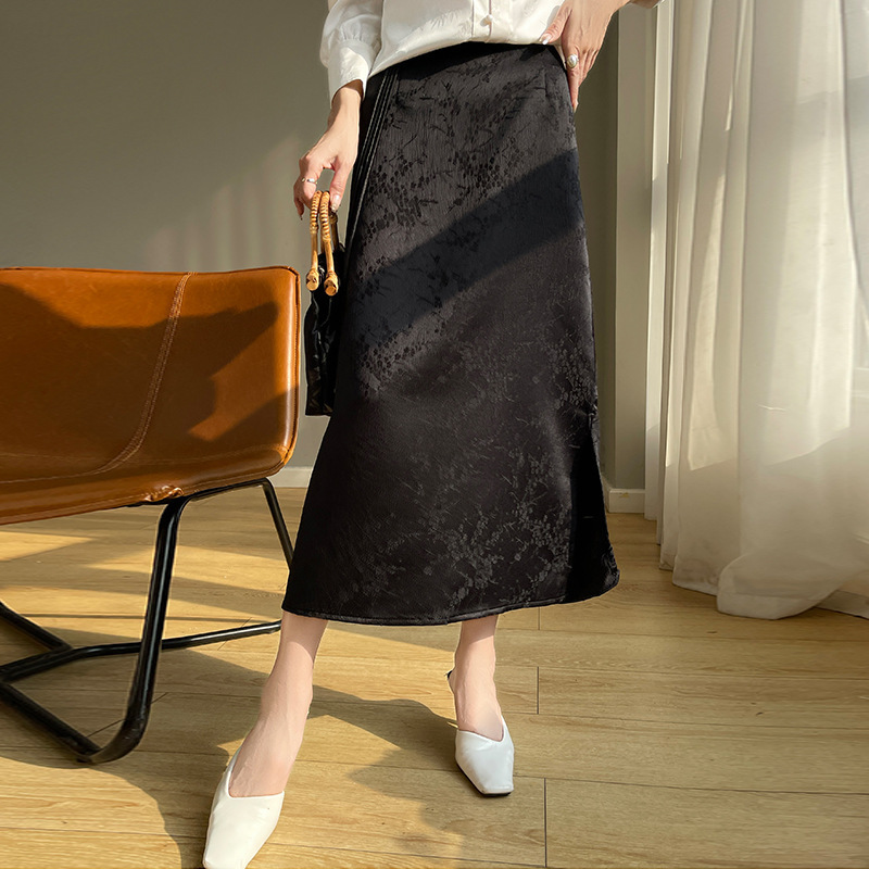 丝绸缎面2026春夏女装新款缎面A字裙简约新中式马面裙提花半身裙