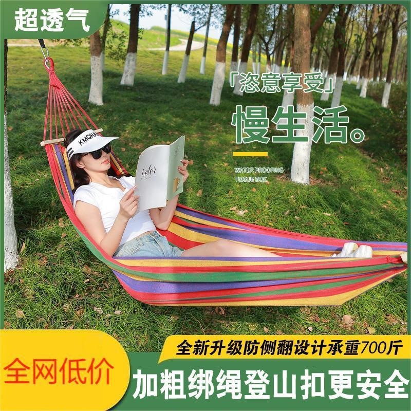 规格(长*宽)【爆款推荐】加宽加厚露营吊床-单人-加厚彩虹【承重535斤】83.5cm宽