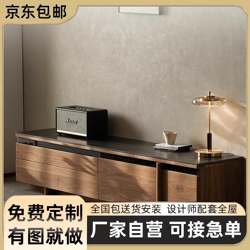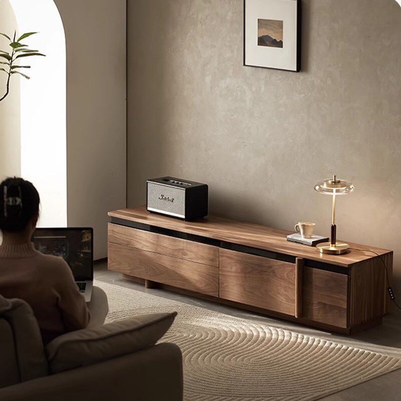 设计日式原木风客厅电视柜北美黑胡桃木实木视厅柜收纳储物柜