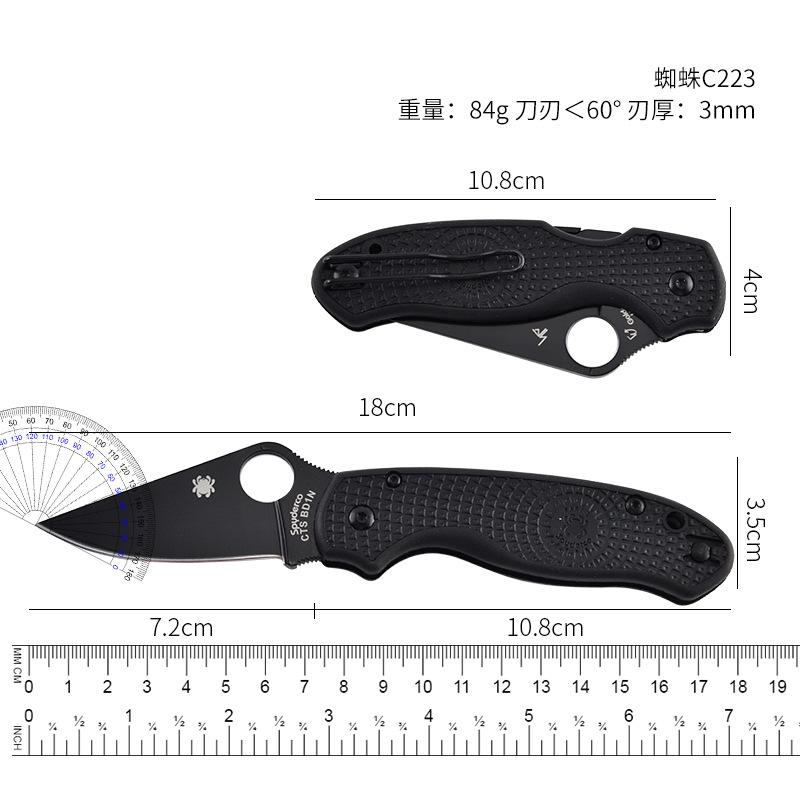 厂家折刀蜘蛛C223轻量级尼龙手柄轴承便携刀迷你口袋刀EDC 折叠刀