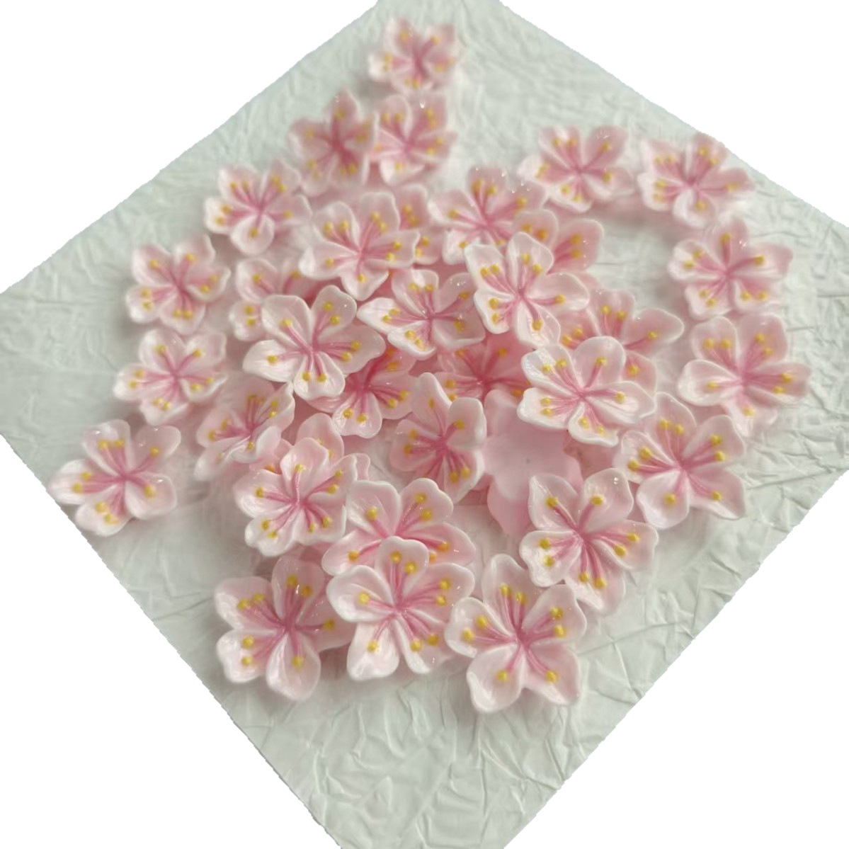 新款亮面桃花樱花系列diy手机壳发夹饰品奶油胶手工材料树脂配件
