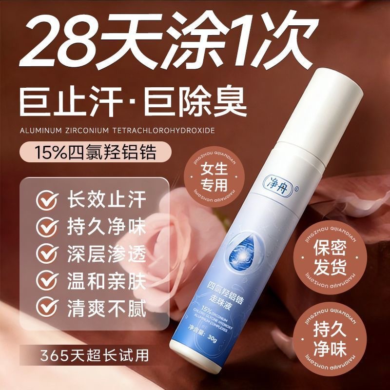 净舟15%四氯羟铝锆止汗露30ml腋下除臭去异味走珠液滚珠正品男女