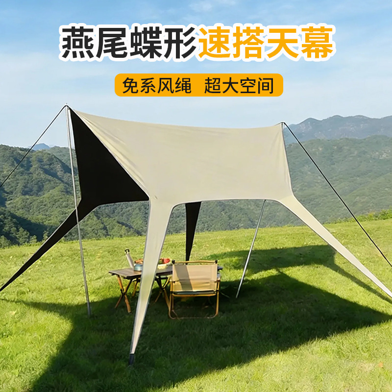燕尾蝶形天幕-黑胶-卡其色-4.5*6.2