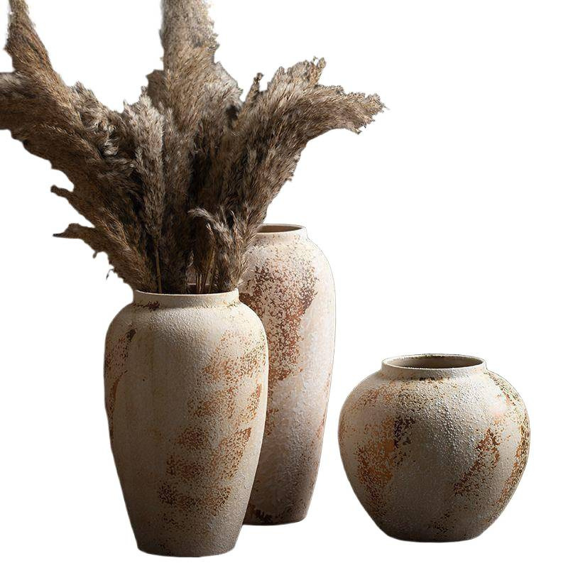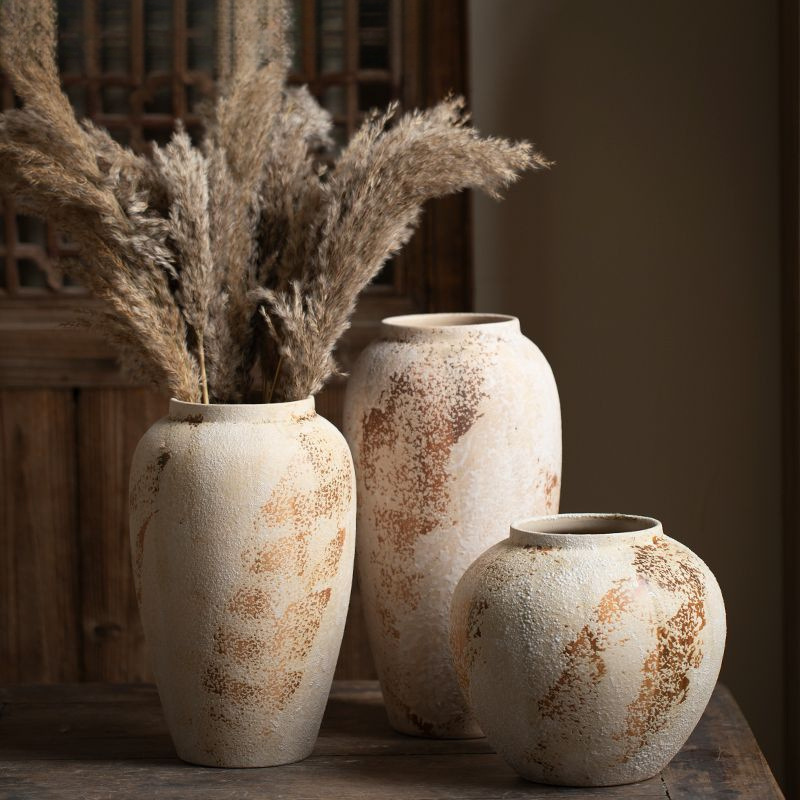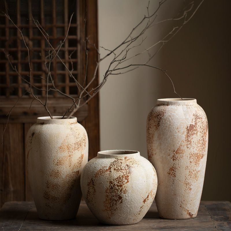 新中式侘寂风陶瓷花瓶装饰品斑驳老旧粗陶罐玄关电视柜摆件