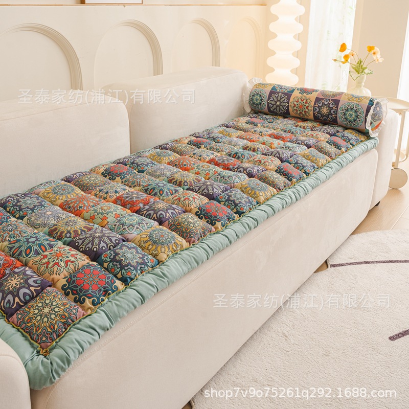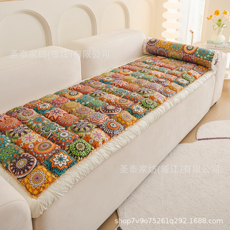 毛绒沙发垫四季通用阿勒泰田园风馒头垫子多功能防滑飘窗垫榻榻米