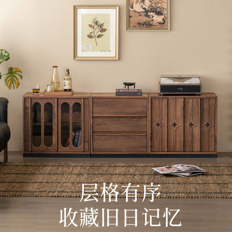 北美黑胡桃实木自由组合柜落地电视柜法式复古风客厅书柜模块边柜