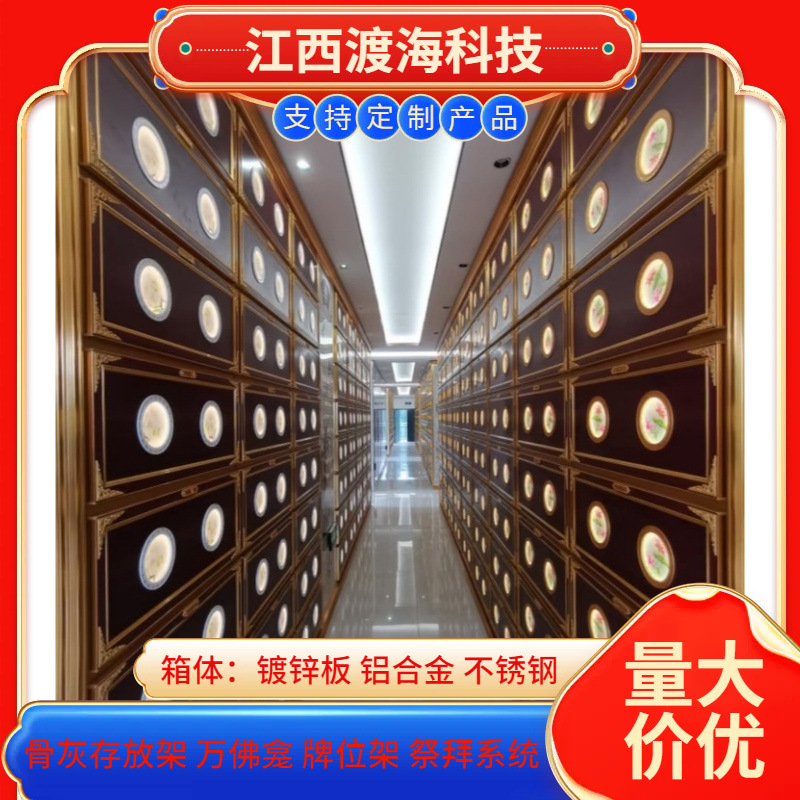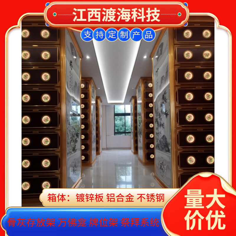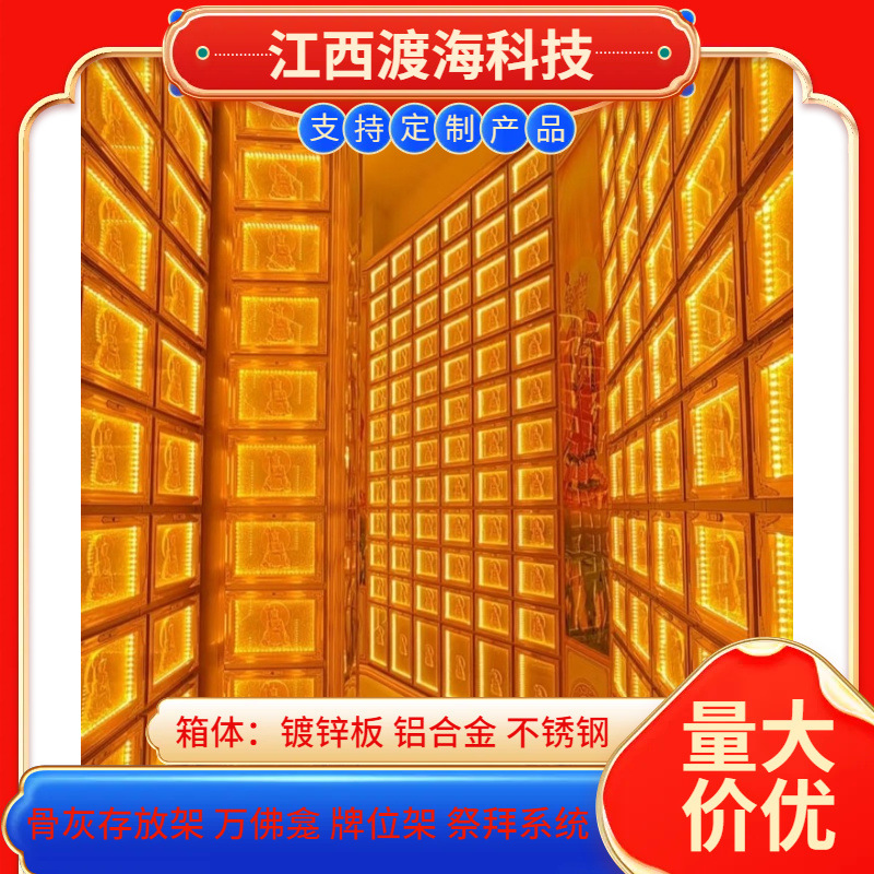 主营产品:骨灰存放架,骨灰盒寄存架,福寿架,万佛龛,牌位架,殡仪馆祭拜系统,寺院智能化管理系统、龙骨吊顶、智能骨灰寄存架