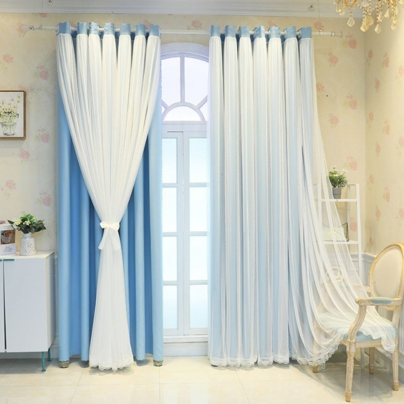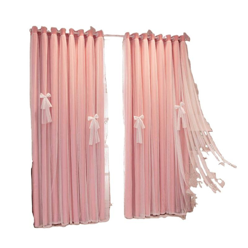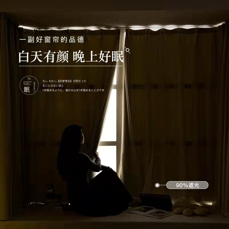 网红新款奶油色全遮光窗帘卧室少女布纱一体双层客厅阳台飘窗
