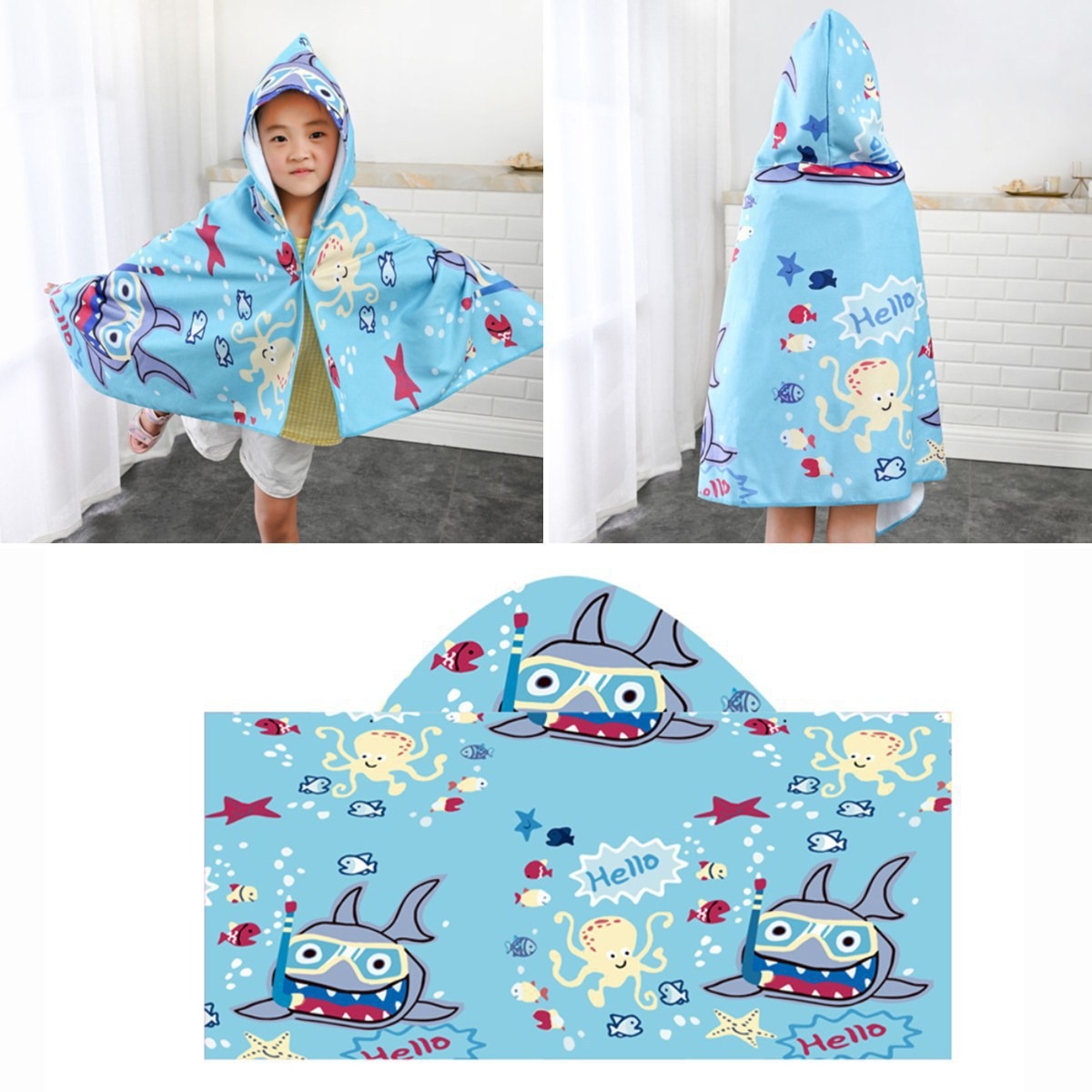 儿童连帽浴巾斗篷卡通印花吸水速干柔软亲肤游泳超细纤维可爱披风
