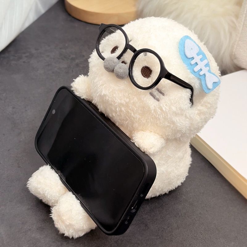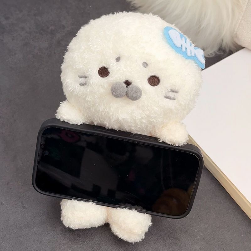 可爱海豹手机毛绒支架懒人手机座柔软支架手机送女朋友礼物摆件
