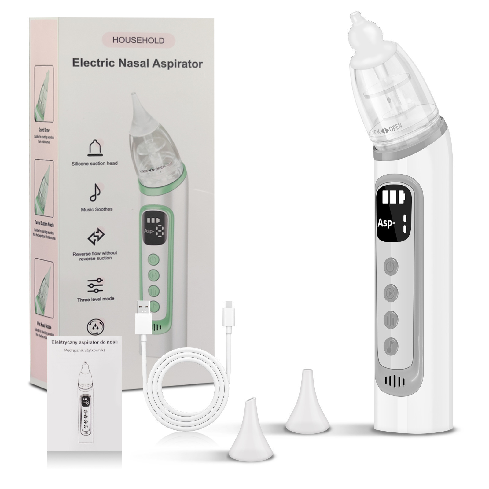 跨境新款婴儿吸鼻器电动舒缓音乐鼻涕清理防逆流家用鼻塞洗鼻器