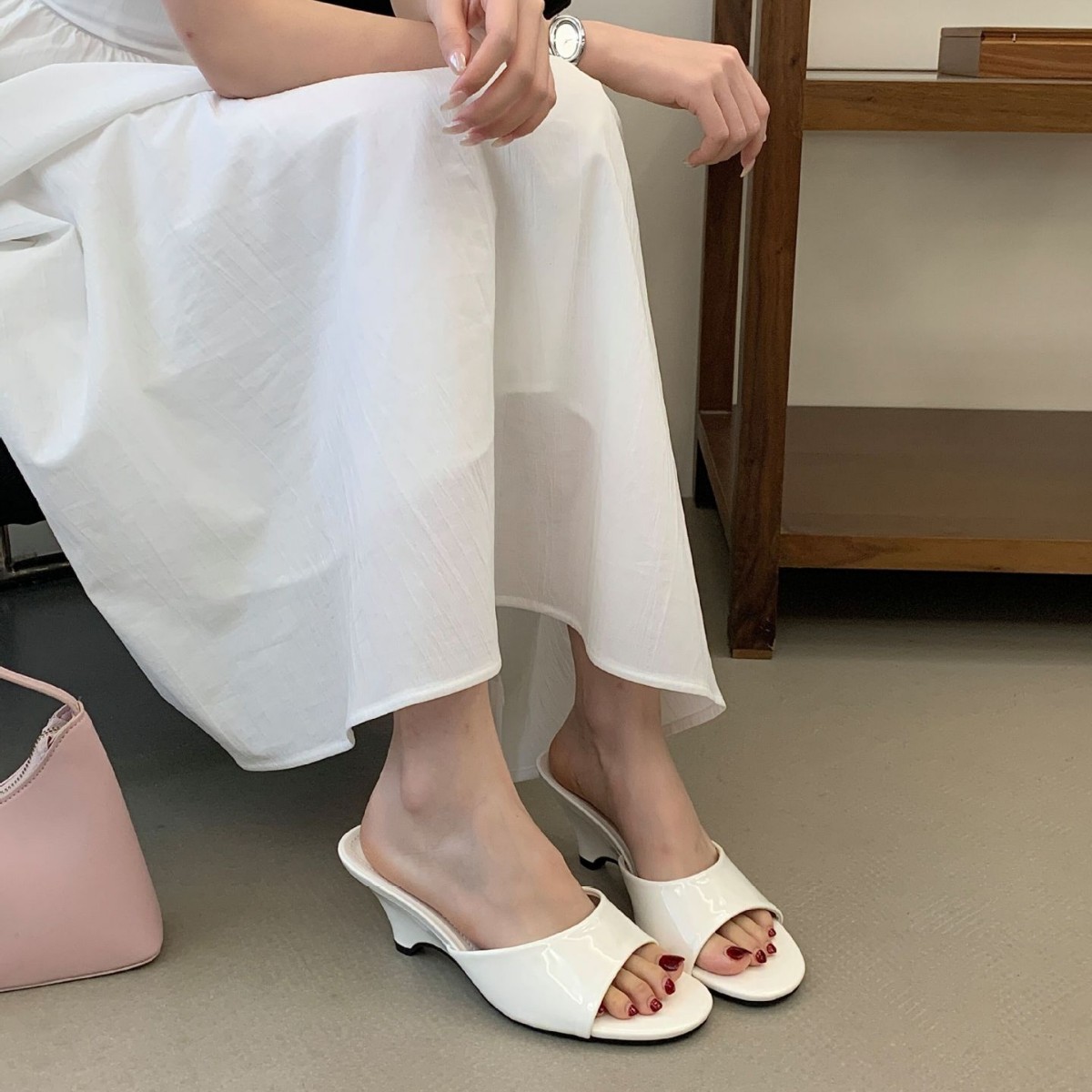 简约方头低跟露趾一字拖鞋皮质舒适女外穿2026春夏新款百搭凉拖鞋