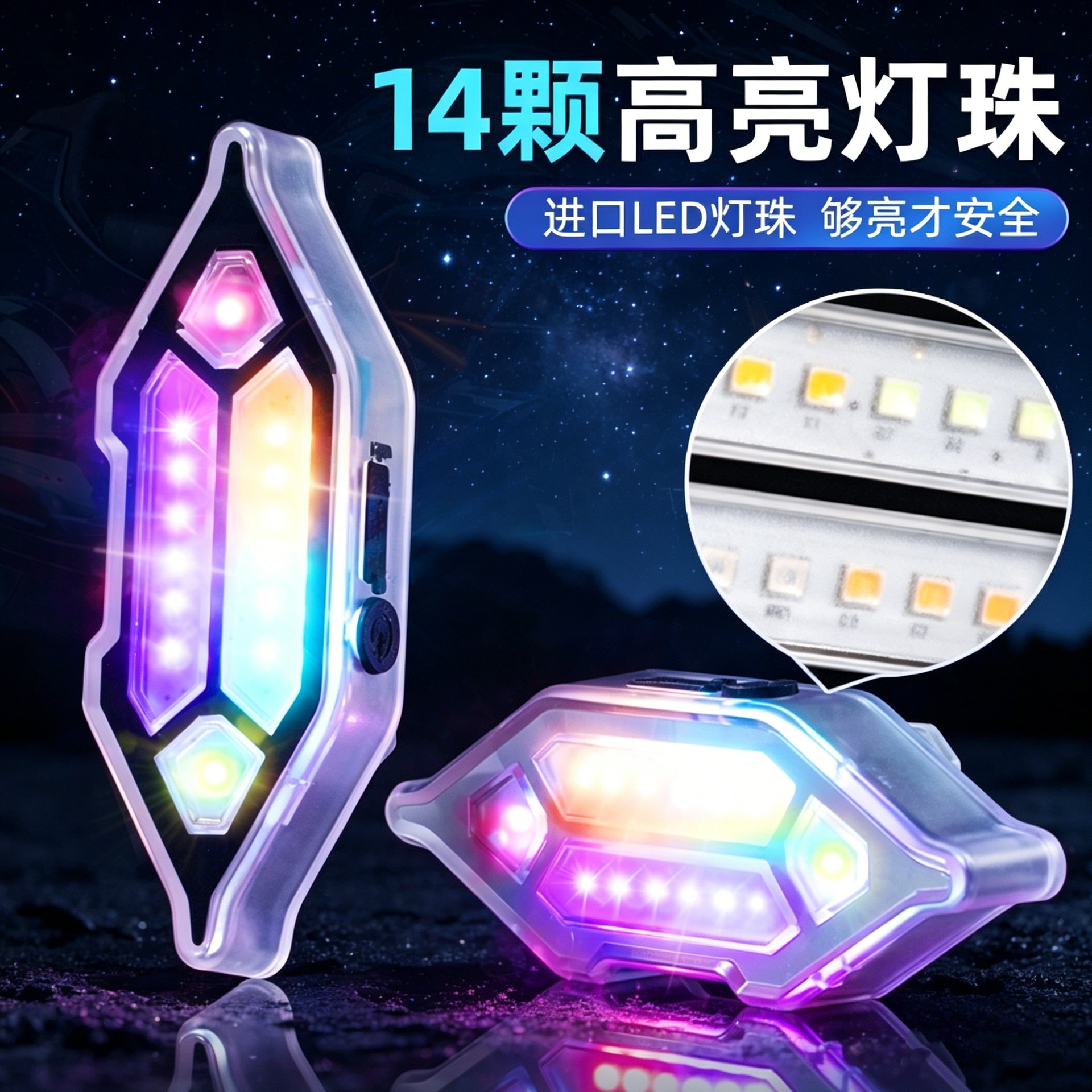 太阳能免接线LED爆闪灯摩托车汽车通用防水防追尾警示灯