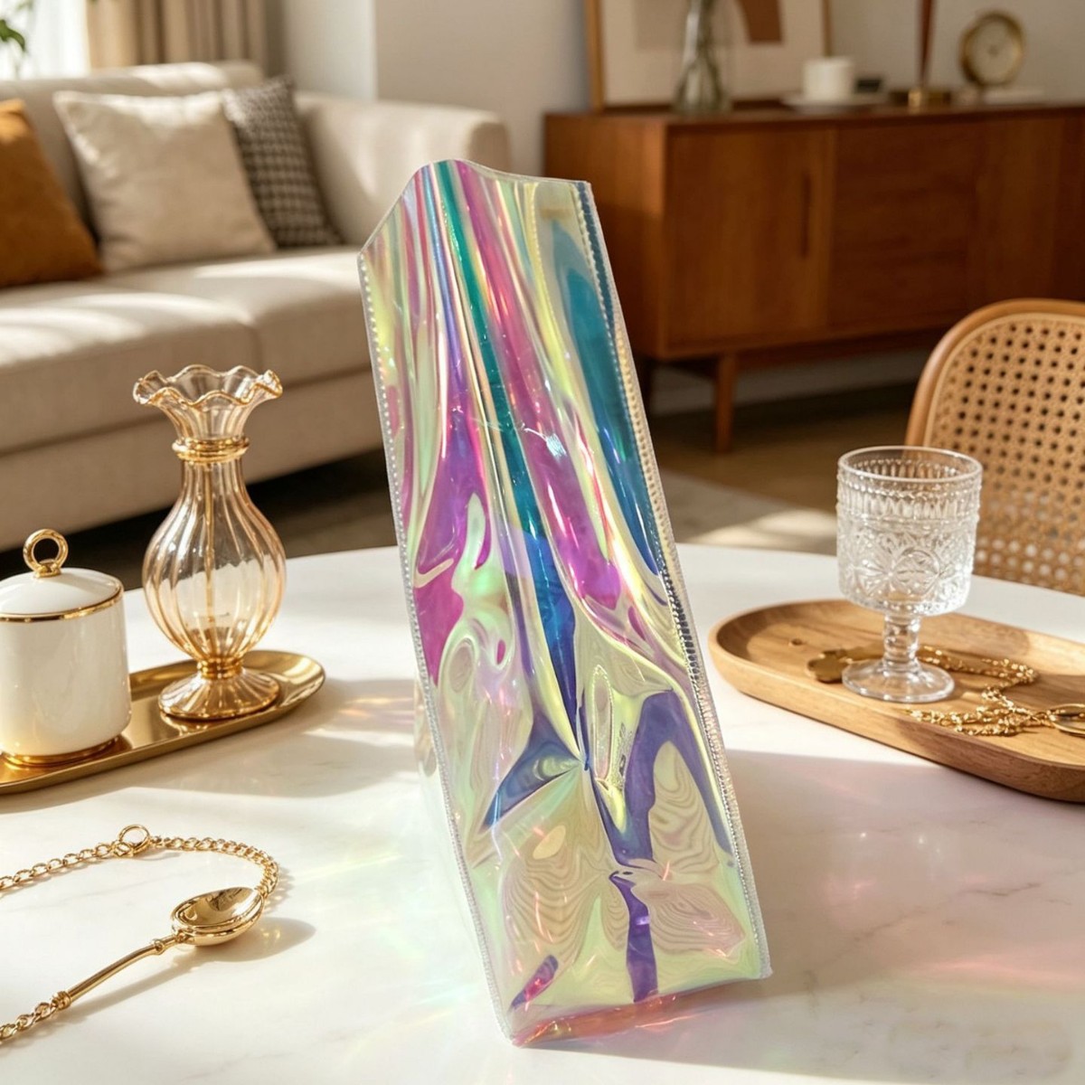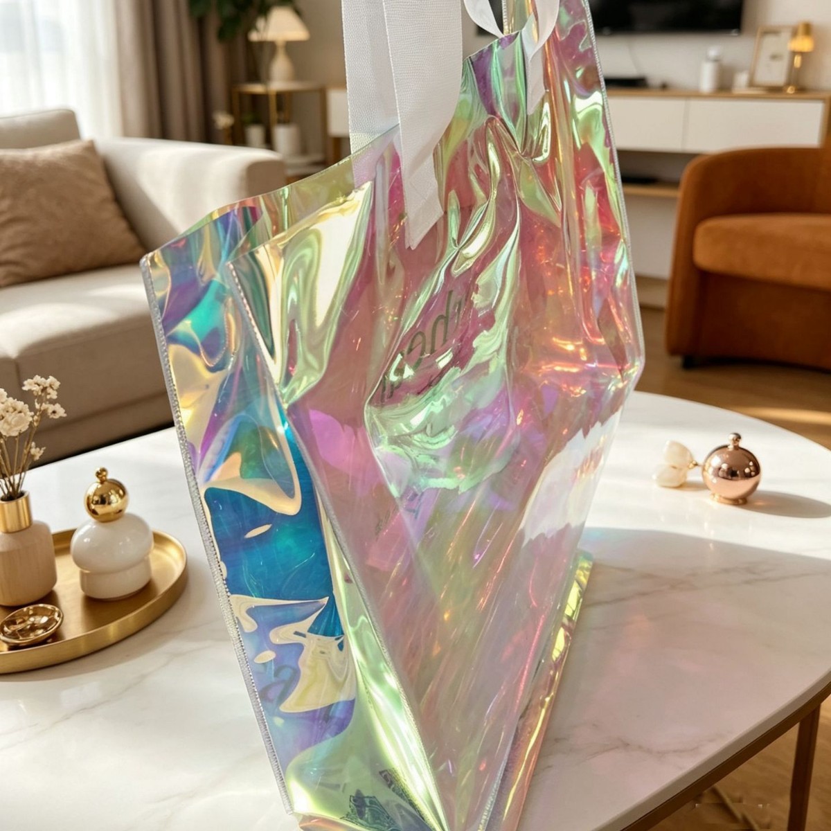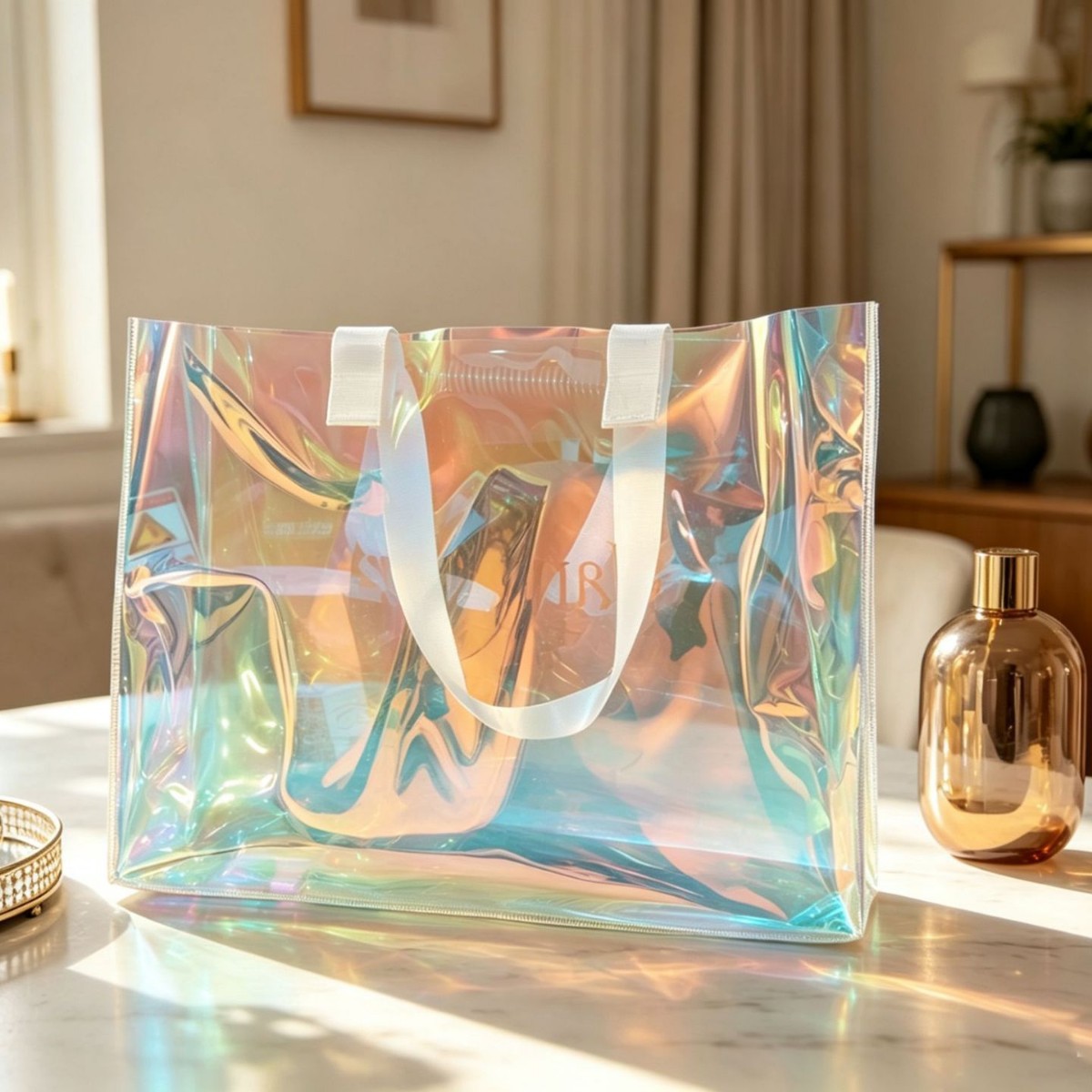 镭射透明PVC手提袋 网红ins风大容量礼品袋 化妆品伴手礼果冻托特