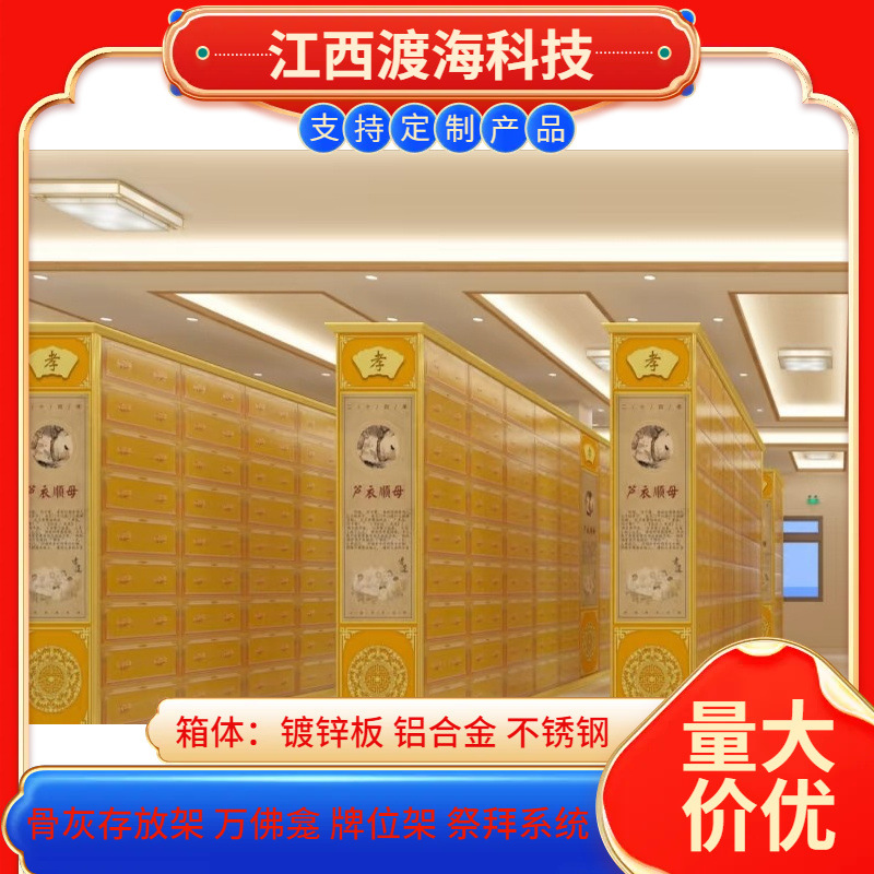 主营产品:骨灰存放架,骨灰盒寄存架,福寿架,万佛龛,牌位架,殡仪馆祭拜系统,寺院智能化管理系统、龙骨吊顶、智能骨灰寄存架