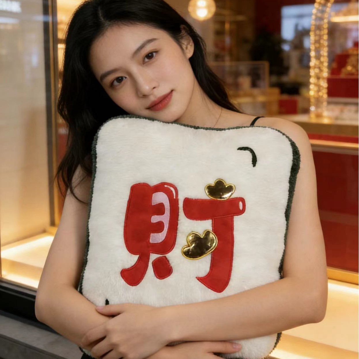 国风新年抱枕喜气洋洋装饰吉祥年味十足公仔靠枕春节氛围摆件礼品