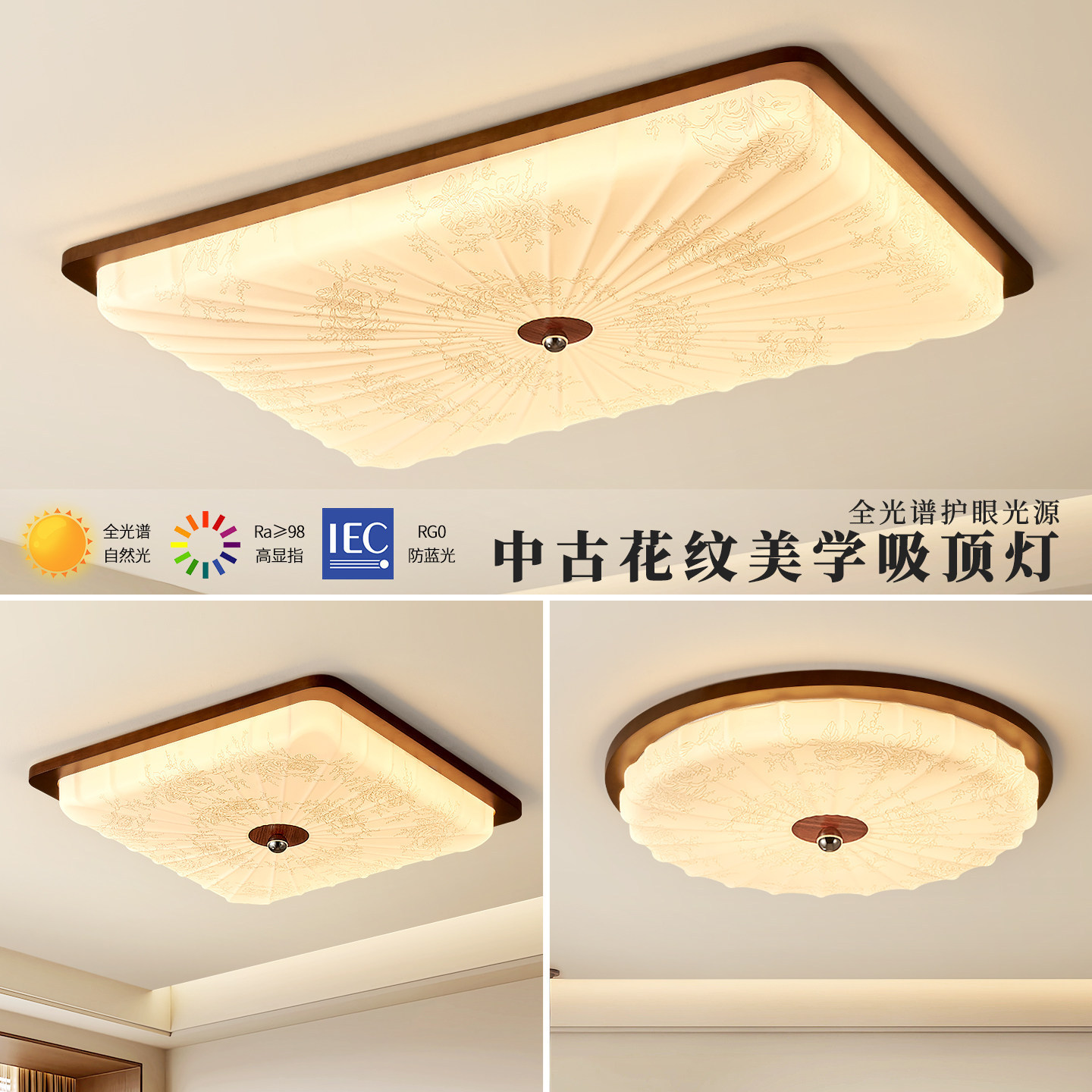 | 光源功率 | 圆52厘米-48W三色变光 | 光源功率 | 圆52厘米-48W无极调光 |