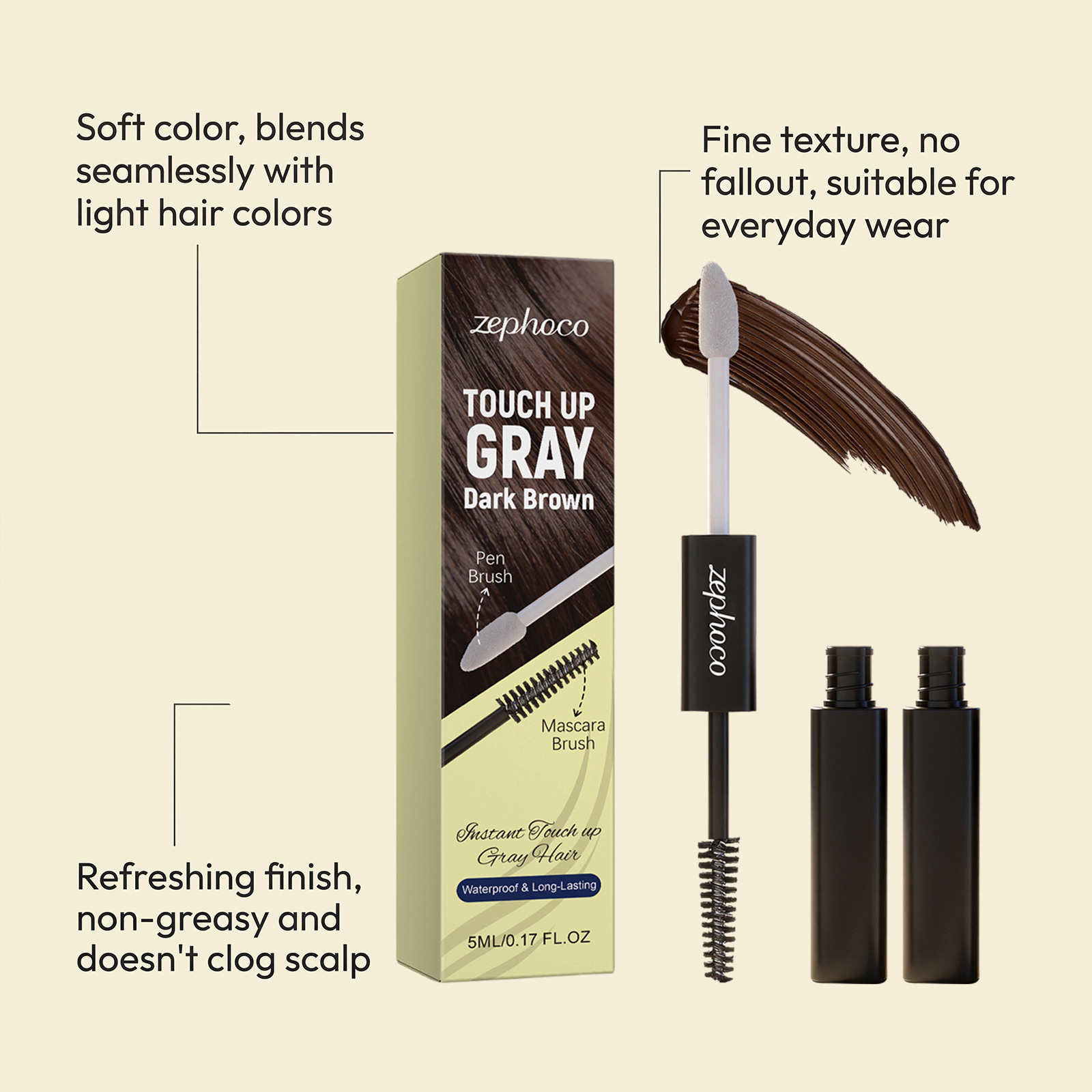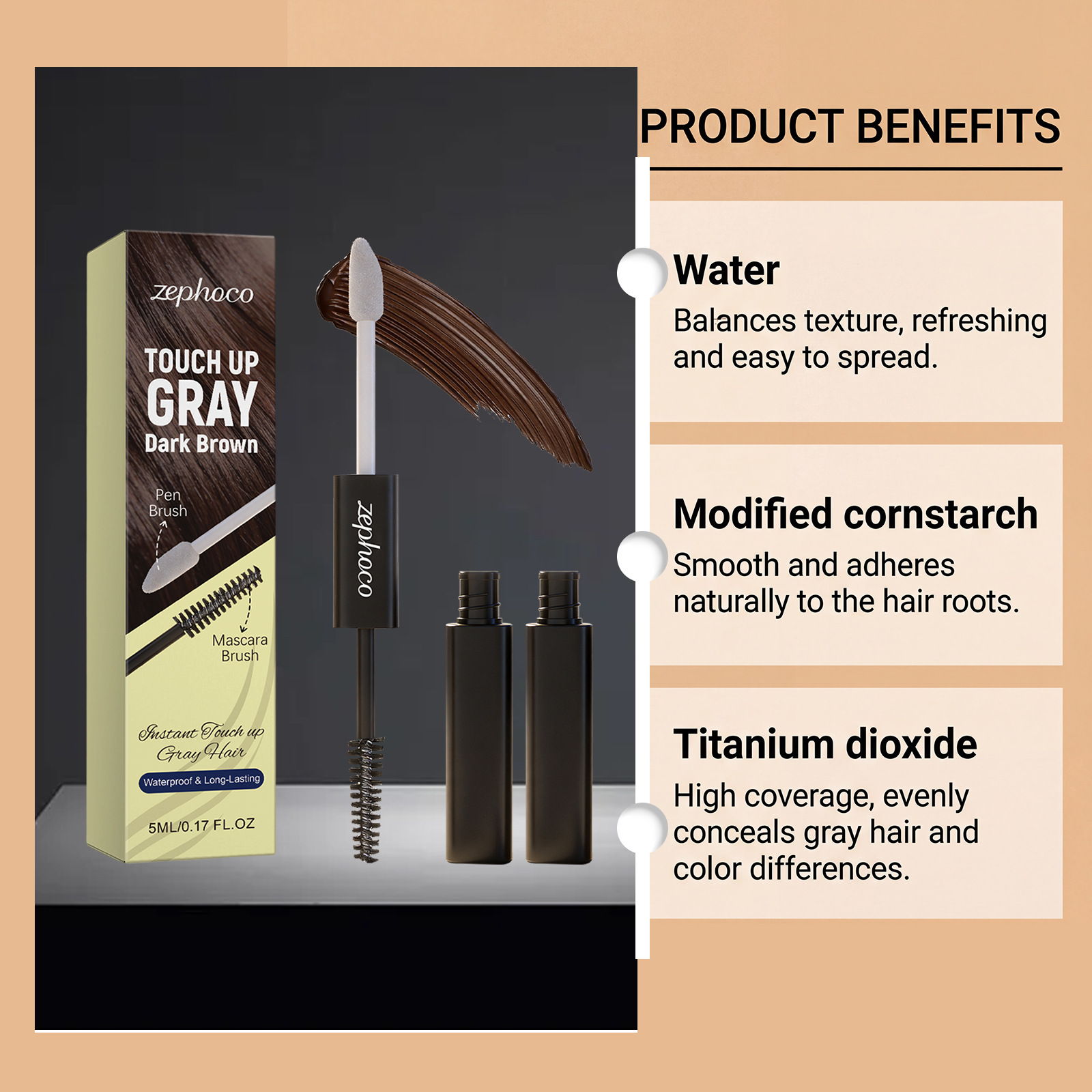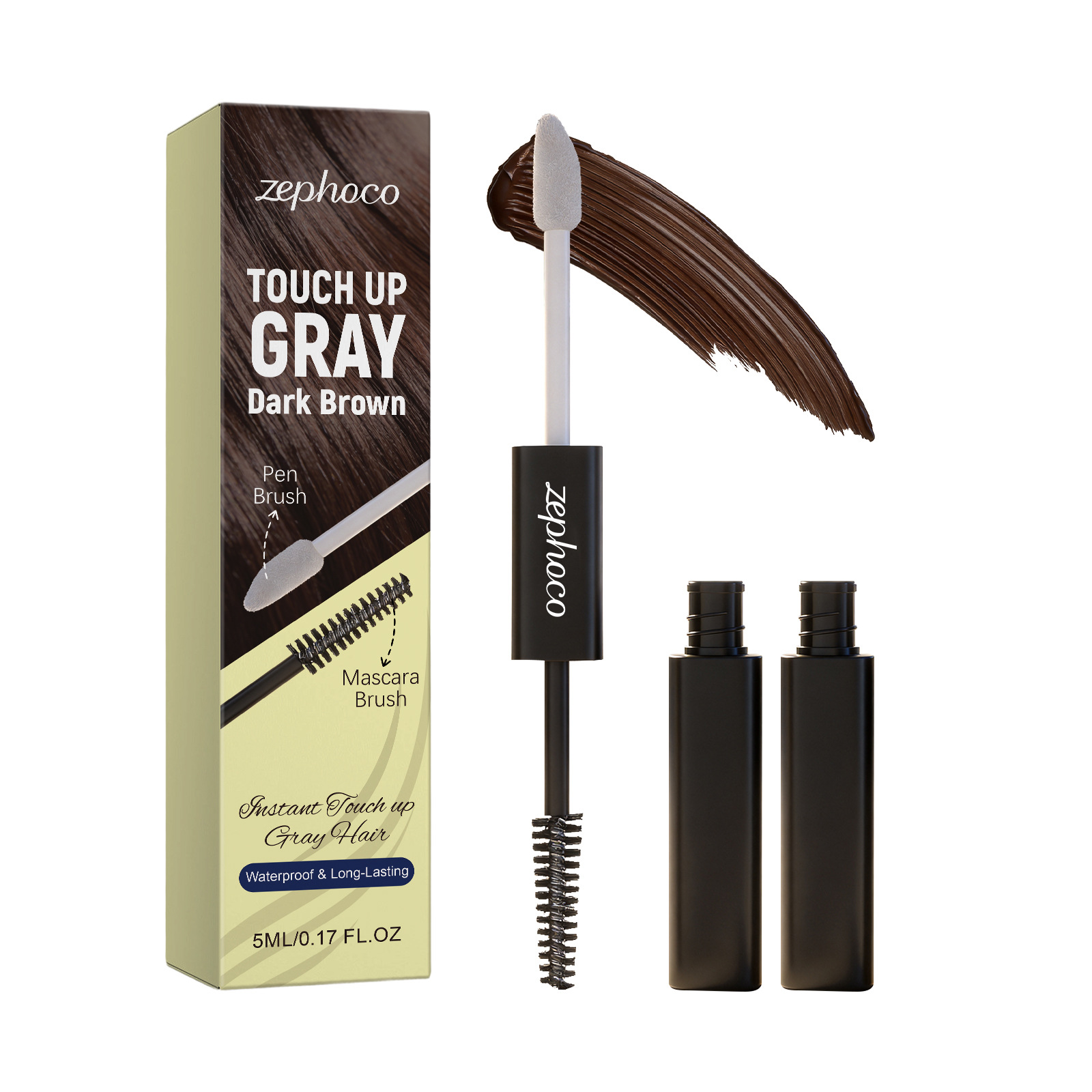 zephoco 双头美发遮盖笔(深棕色)自然显色时尚便捷均匀上色美发