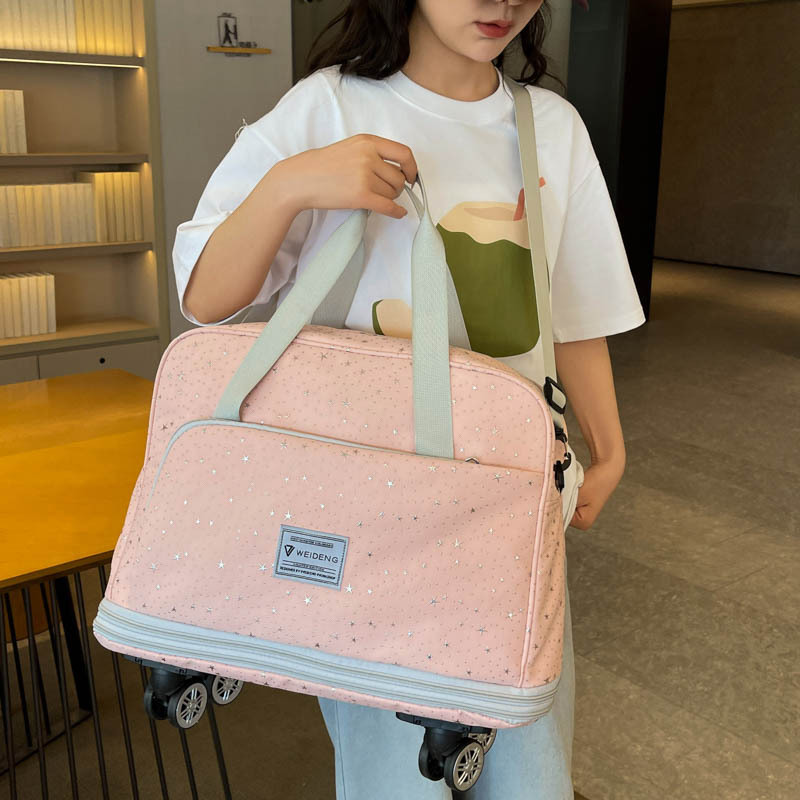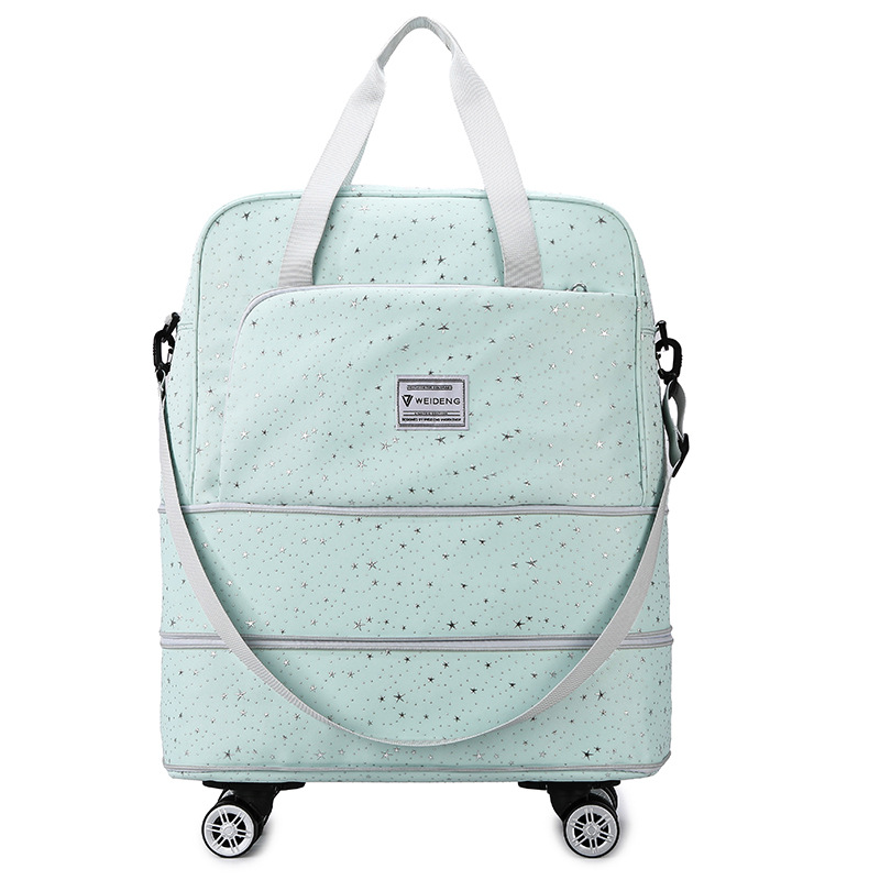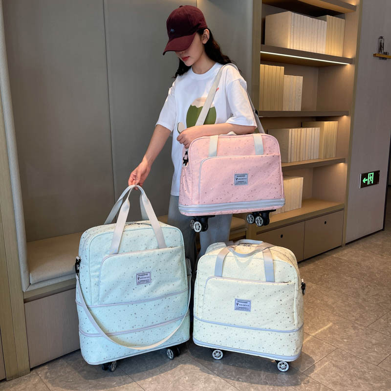跨境旅行包双层滑轮行李包波点星星可扩展便携登机学生手提收纳袋