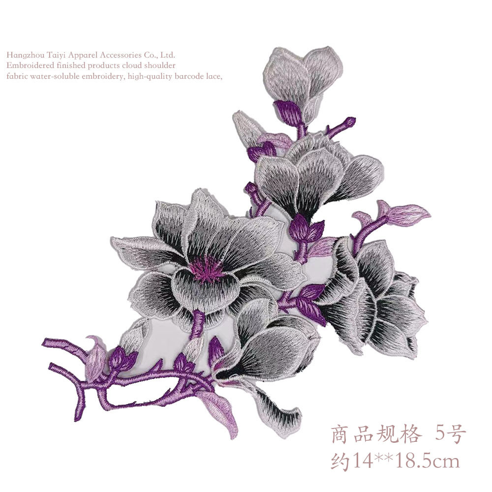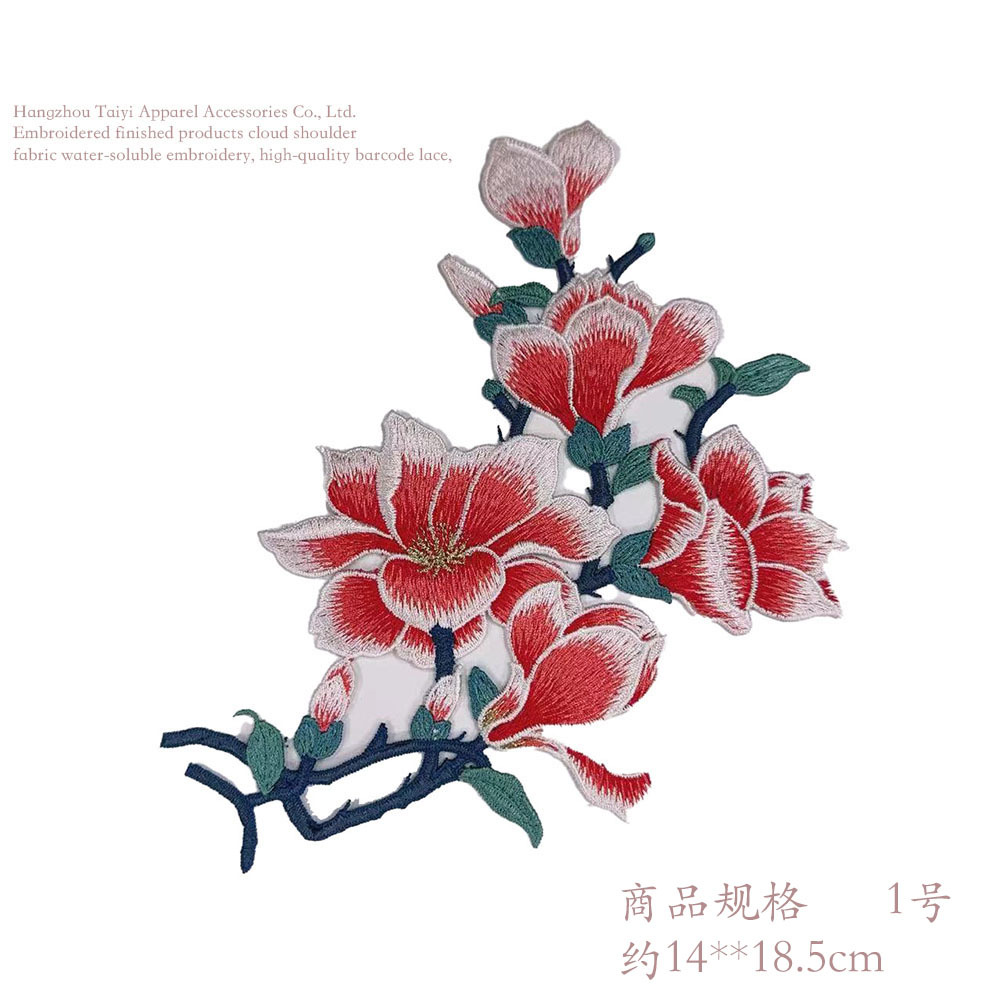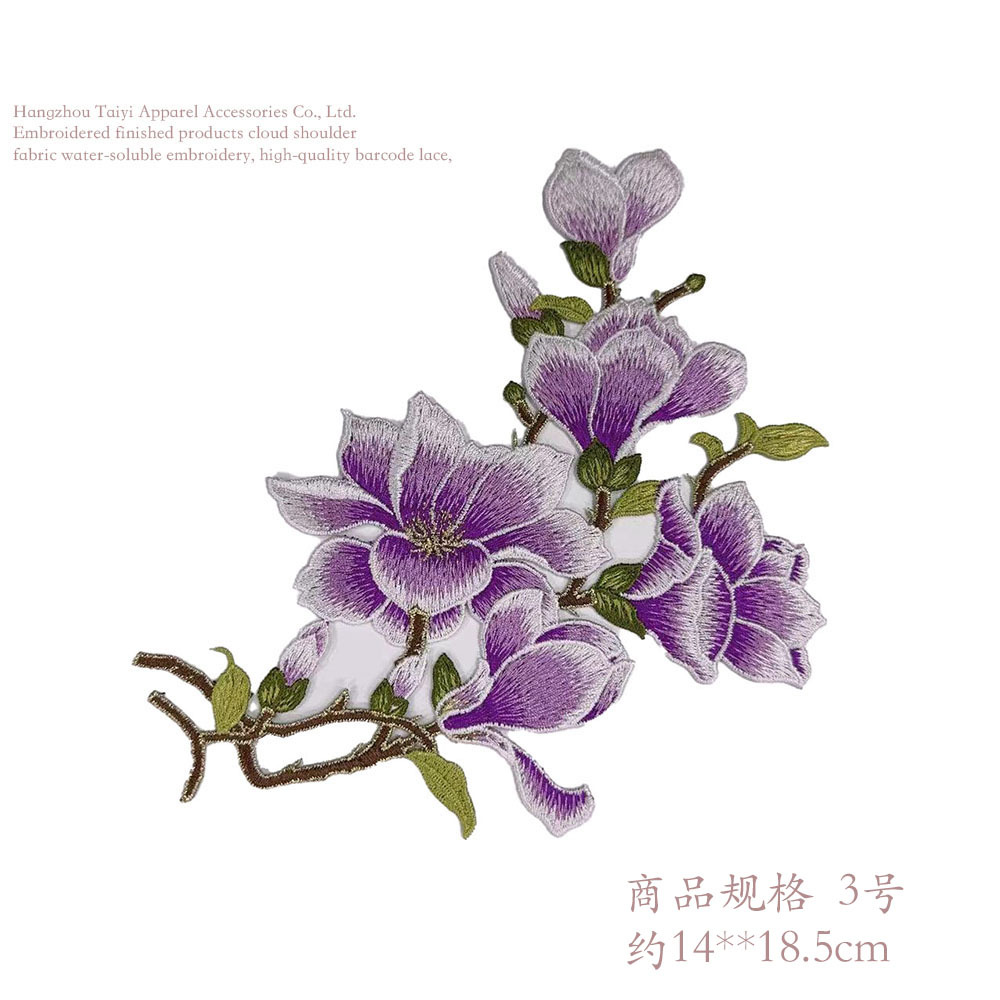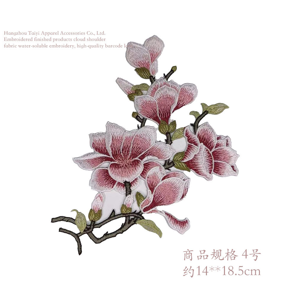 精品玉兰花图案刺绣布贴diy吊带真丝裙帽子大衣装饰辅料