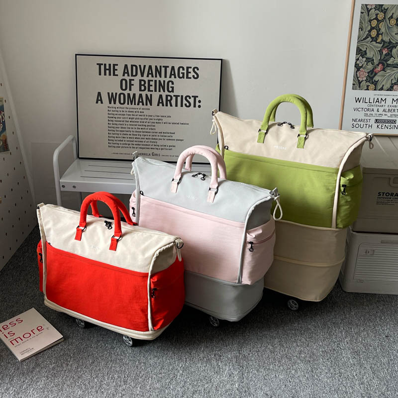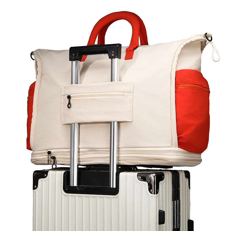 旅行包双层滑轮行李包干湿分离健身包可扩展便携登机手提收纳袋