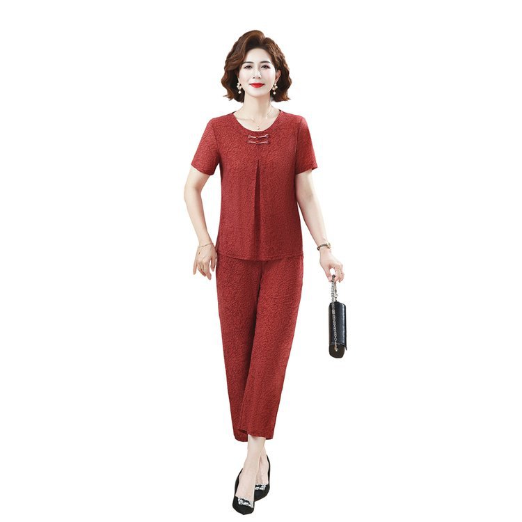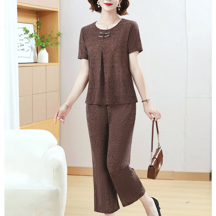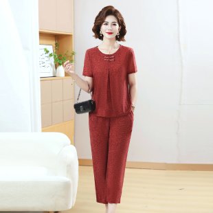 中老年妈妈装夏季套装宽松显瘦短袖上衣七分裤两件套气质女装