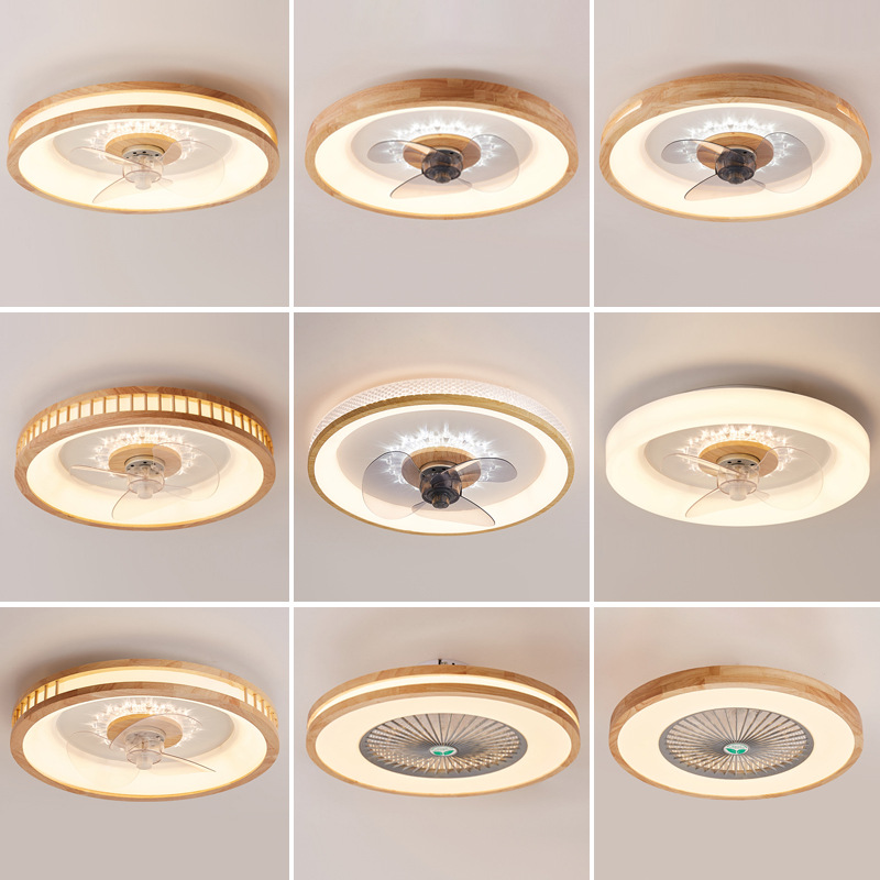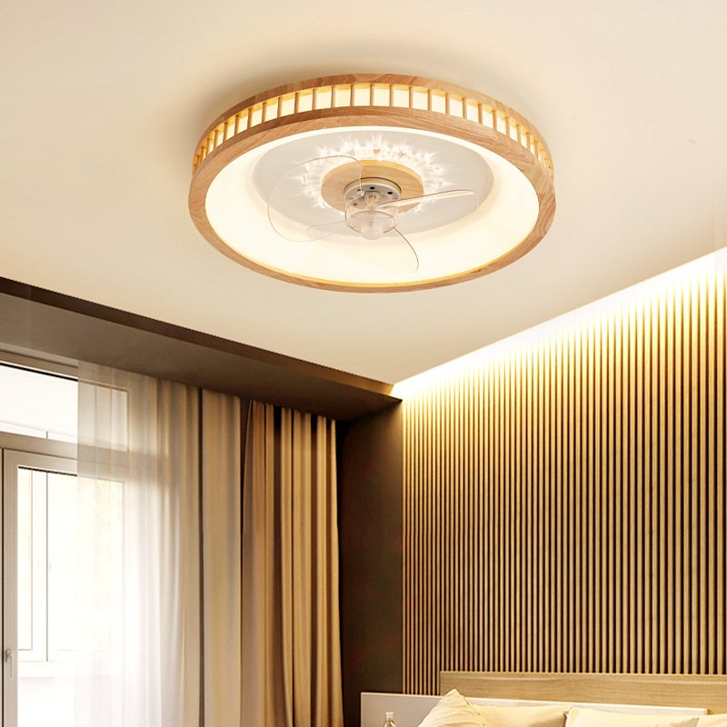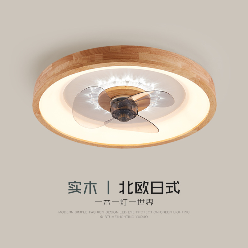 北欧原木日式风扇吸顶灯主卧室灯简约智能静音隐形儿童书房电扇灯
