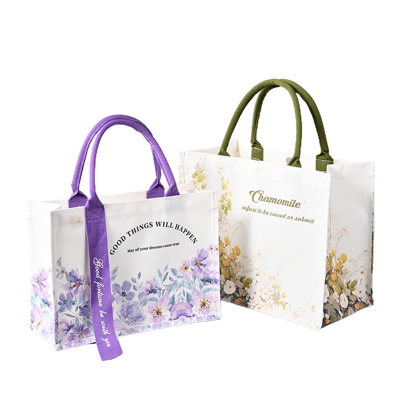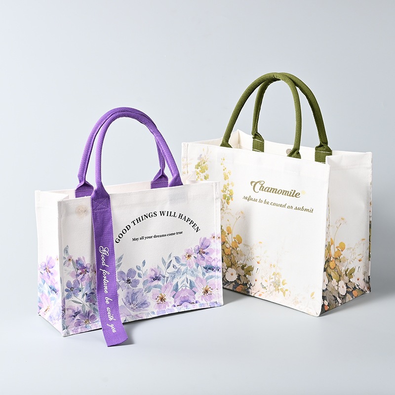 立体帆布托特包飘带帆布袋覆膜帆布包广告宣传环保购物袋现货