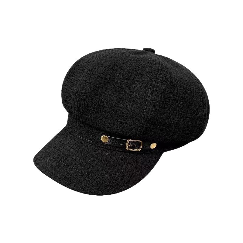 颜色皮扣款八角帽-【黑色】