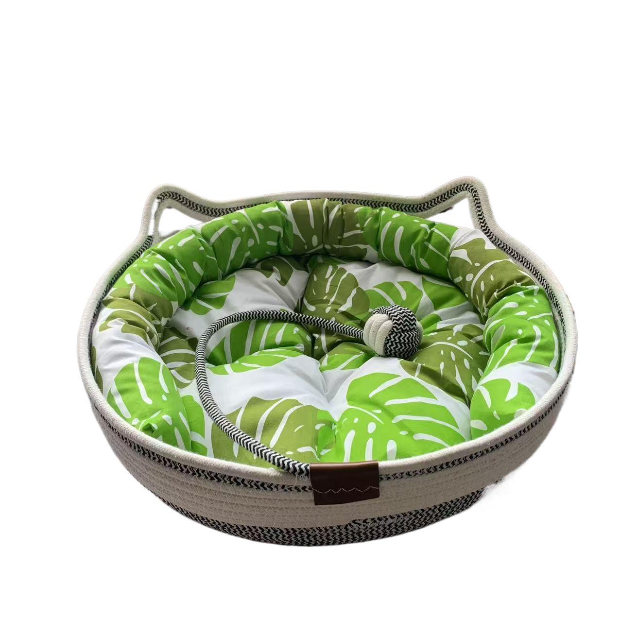| 规格 | 黑白双拼猫窝+绿叶棉垫+靠枕【送藤席】 | 规格 | 黑白双拼猫窝+云棉垫【送藤席】 |