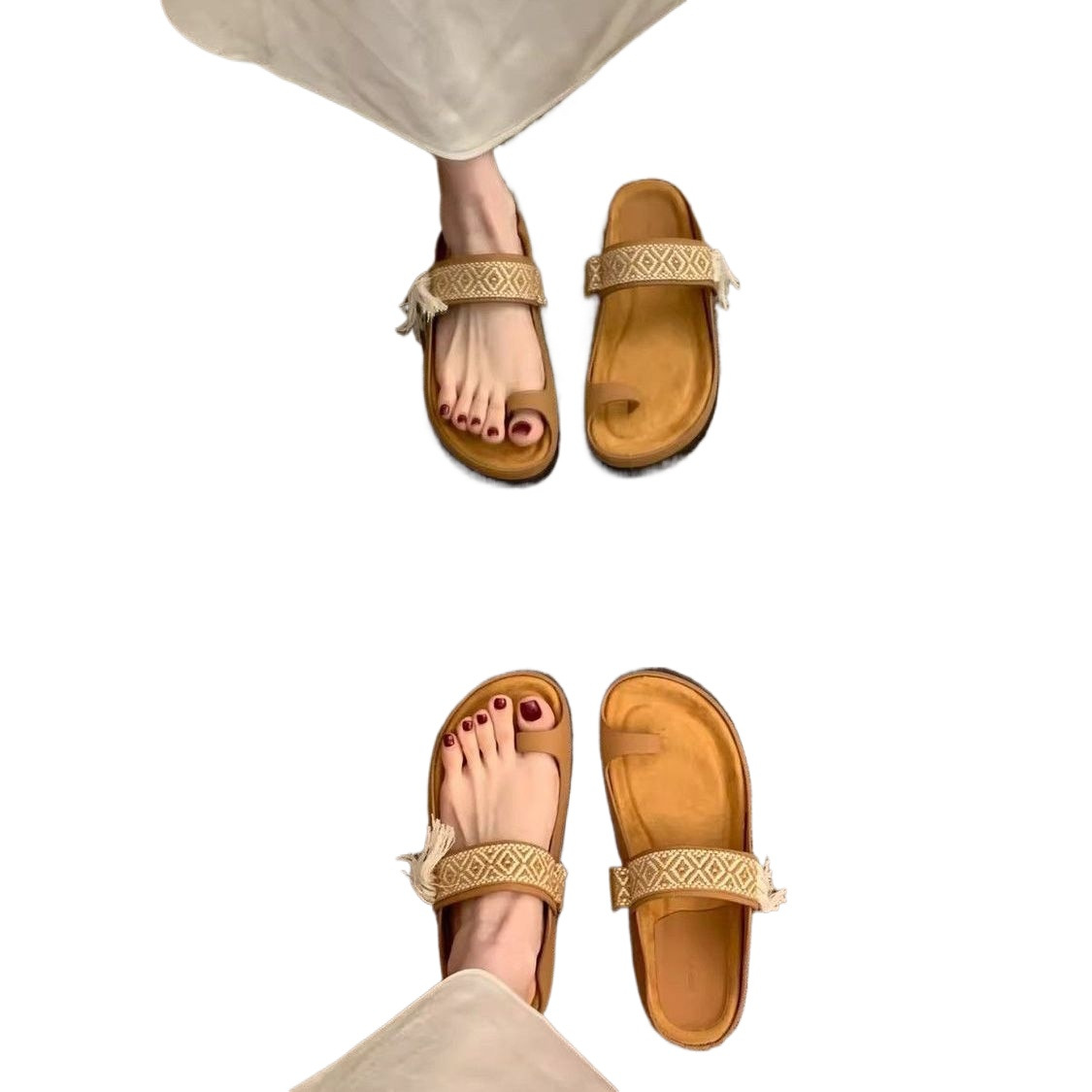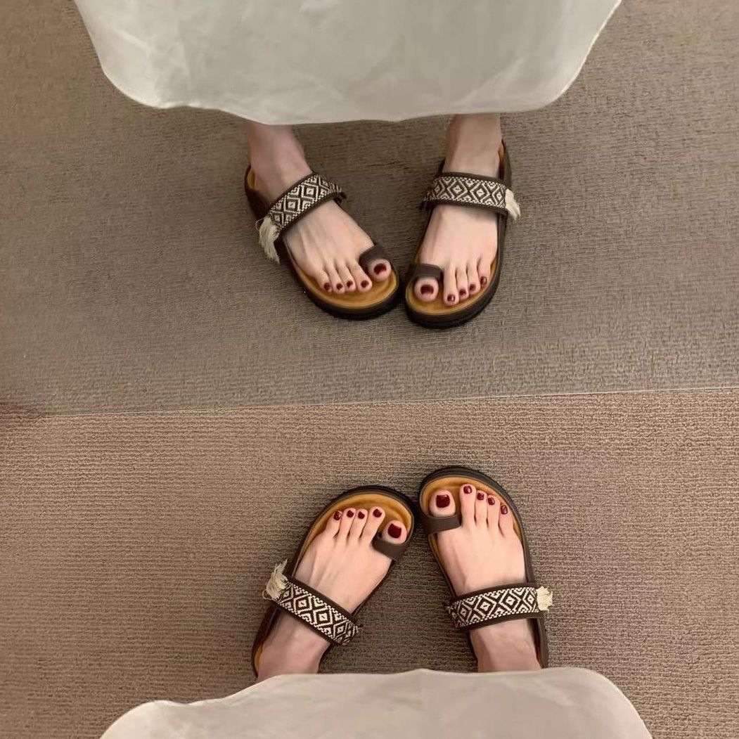 法式复古内增高套趾沙滩凉拖外穿女鞋2026年夏季新款巨好看的拖鞋
