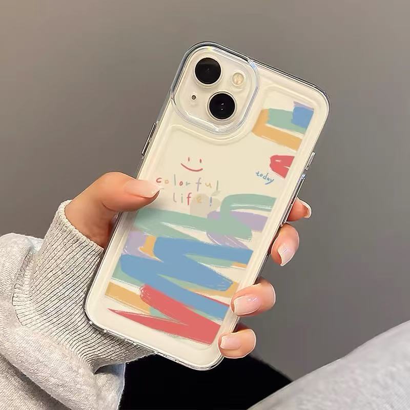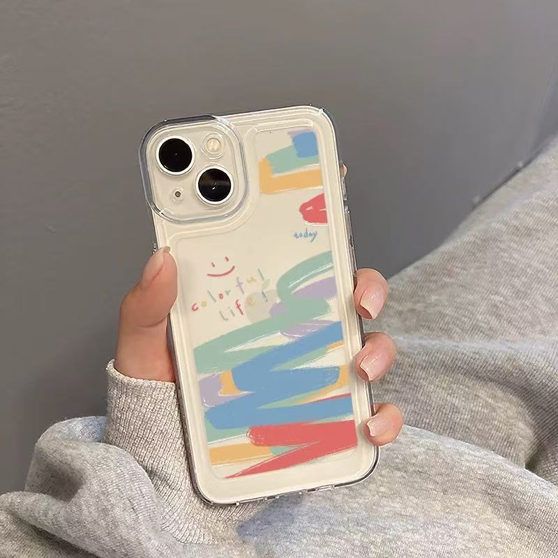 彩虹笑脸涂鸦适用苹果17手机壳iphone16promax简约13防摔15跨境14