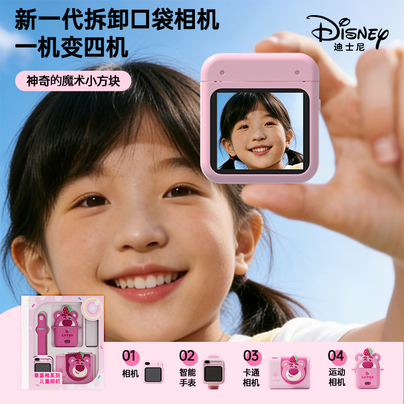 新款儿童相机手表三件套 迪士尼多功能180°旋转镜头高清便携相机