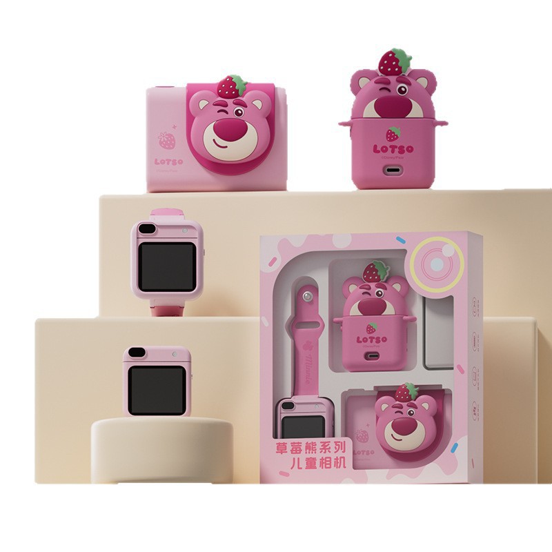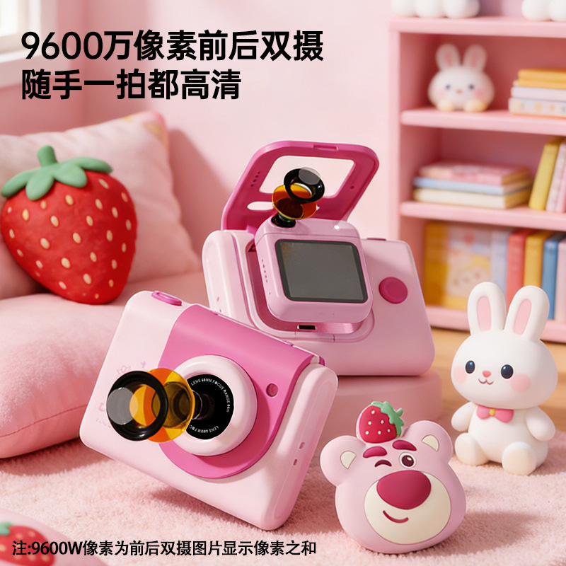 颜色草莓熊(无内存)三件套旋转相机4800w高清像素