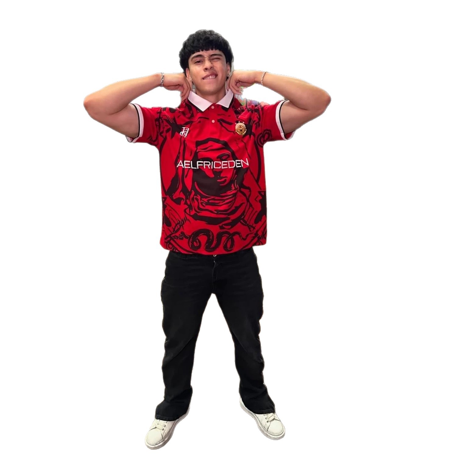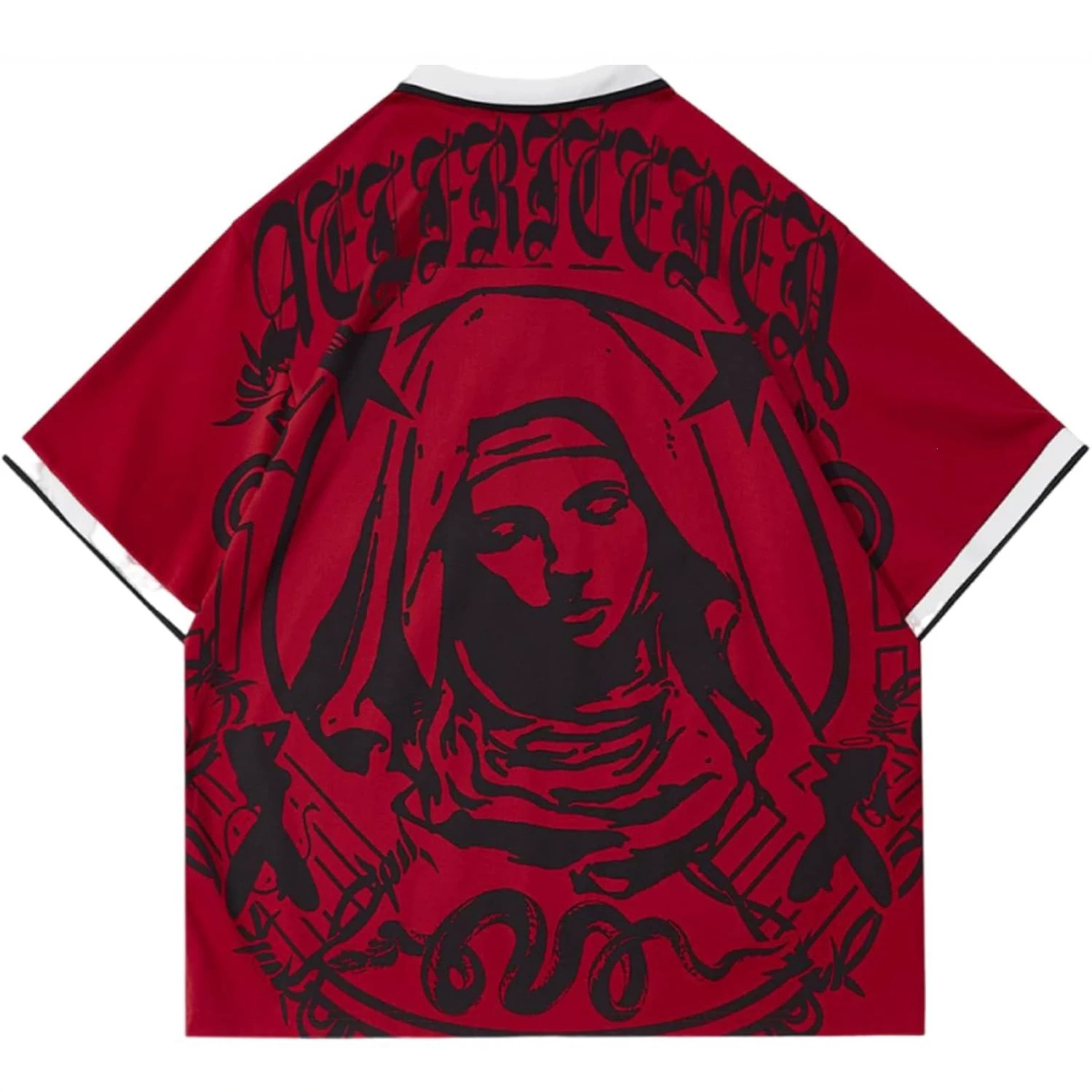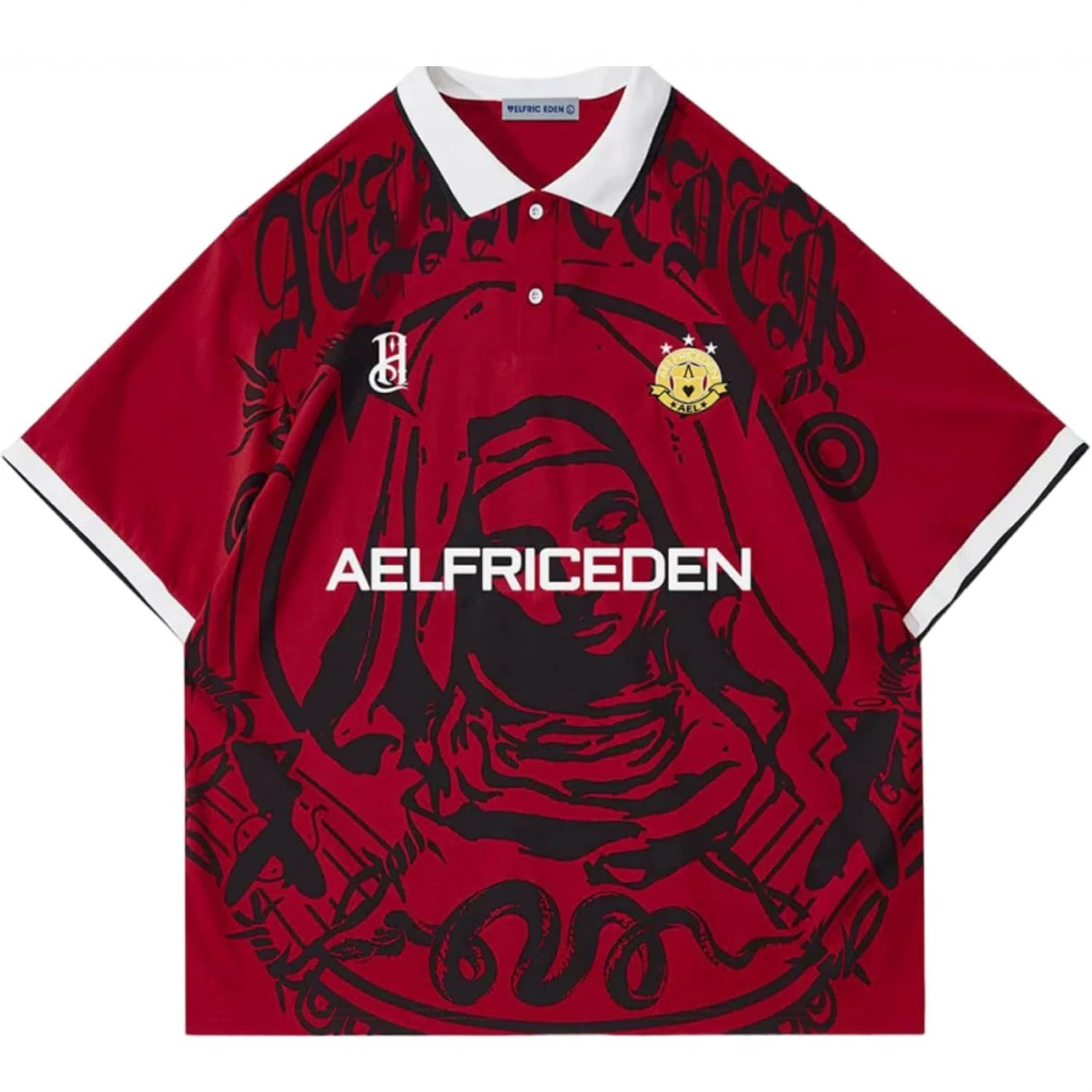 跨境专供Y2K美式复古红色球衣风 Polo衫男女同款宽松休闲短袖T 恤