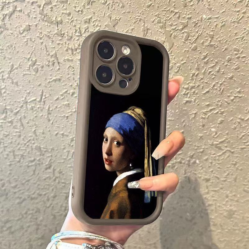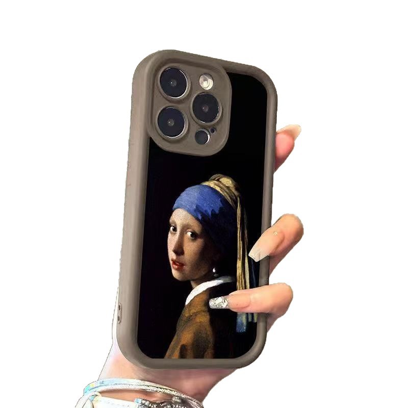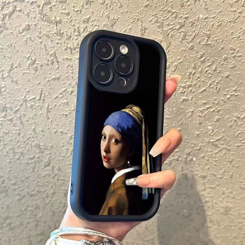 油画珍珠耳环适用苹果17手机壳iphone16promax跨境15pro14/13文艺