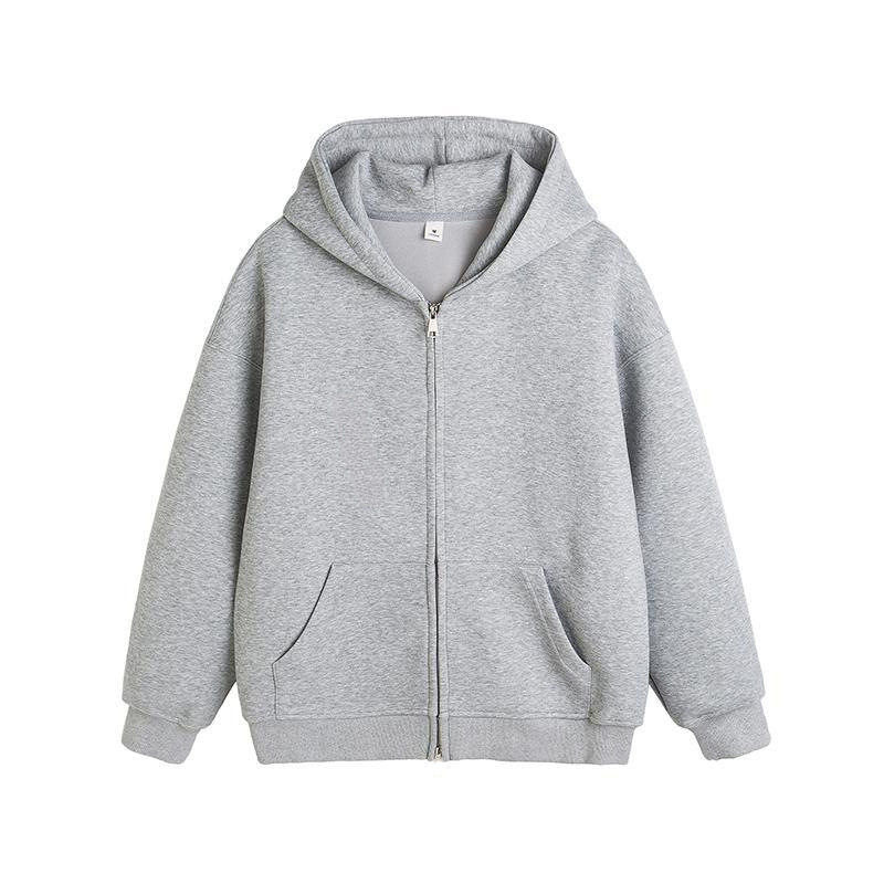 多色百搭拉链连帽卫衣 美式宽松重磅 男女春秋慵懒风纯色外套推荐