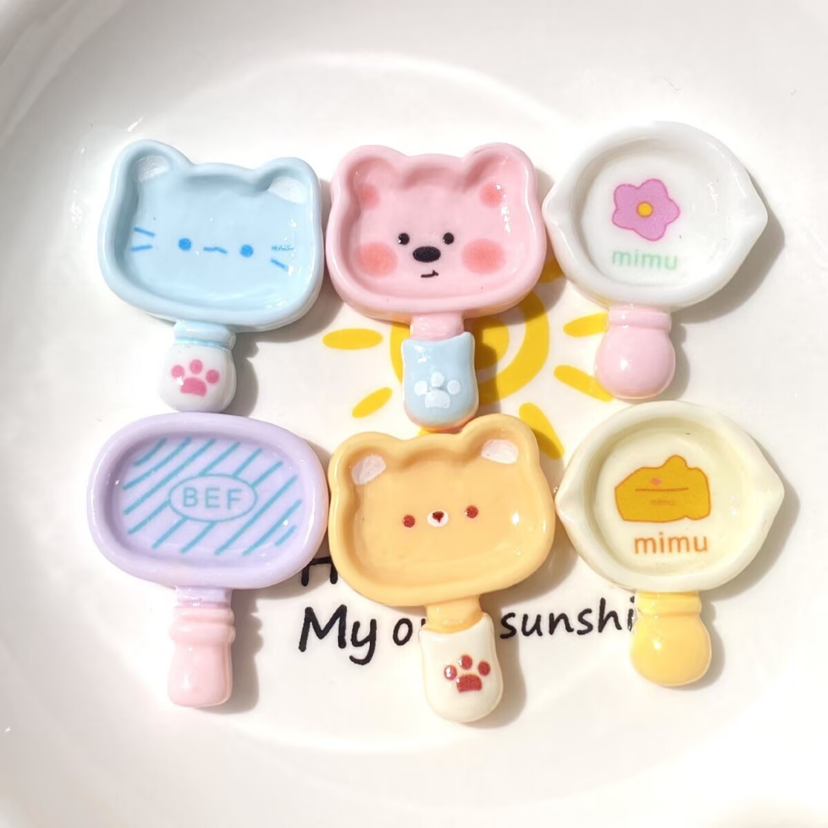 卡通动物餐具平底锅diy树脂配件 奶油胶手工手机壳发夹文具盒贴片