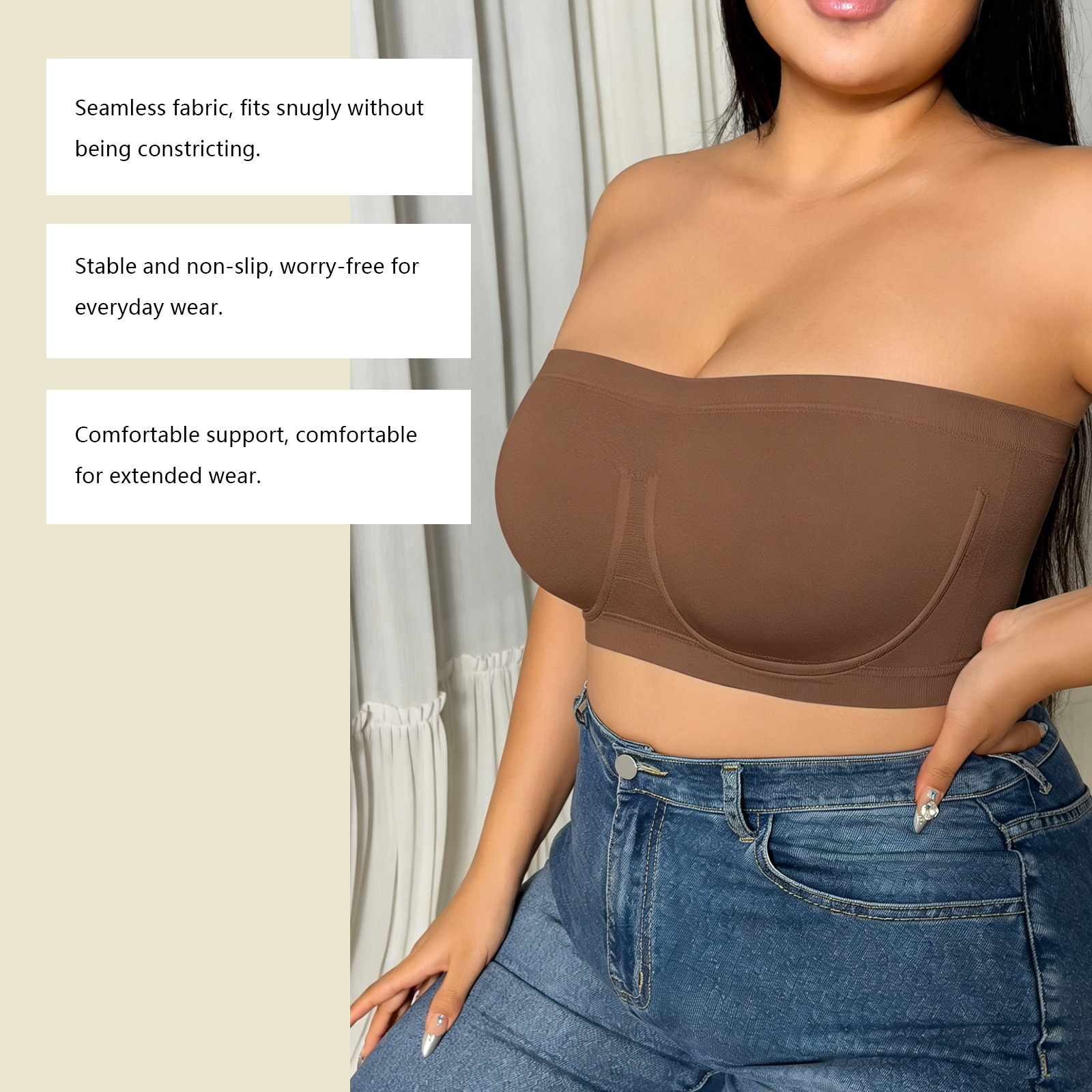 Zeriluna 无肩带防滑抹胸式文胸 高弹力舒适露肩服饰搭配多色可选