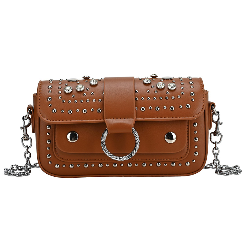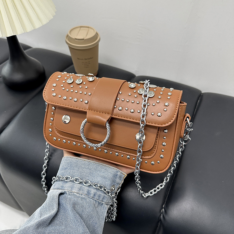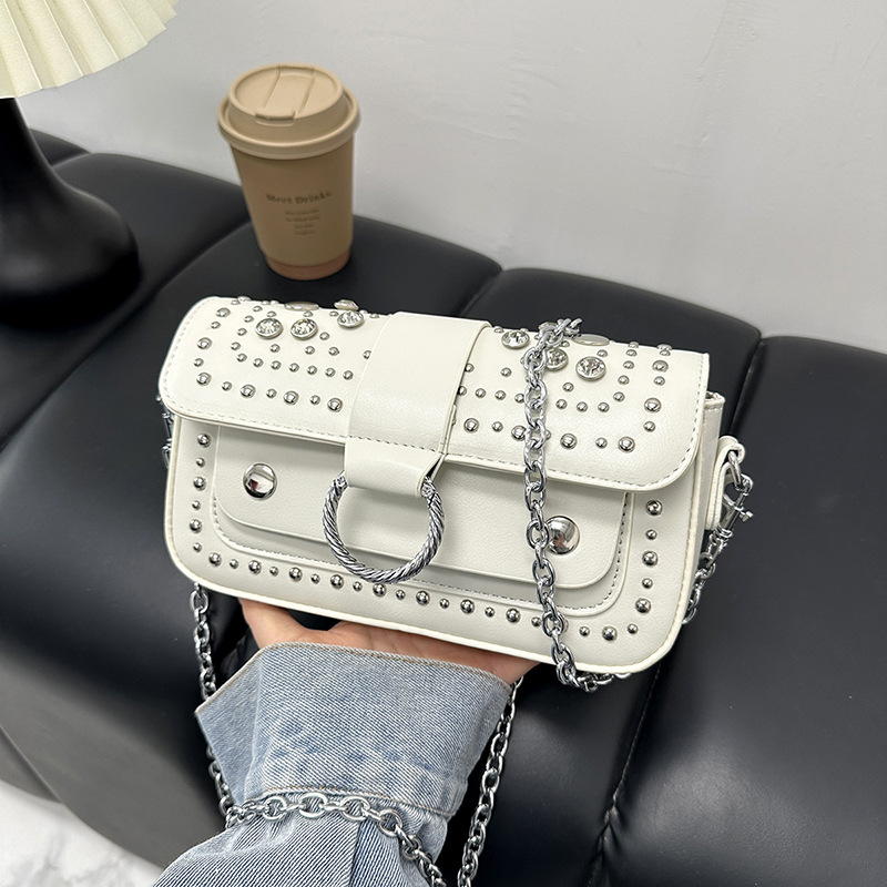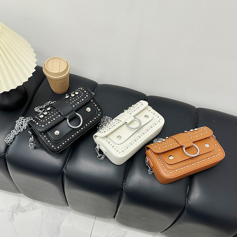 跨境2026女包法式设计铆钉圆圈潮流时尚简约百搭链条单肩斜挎包