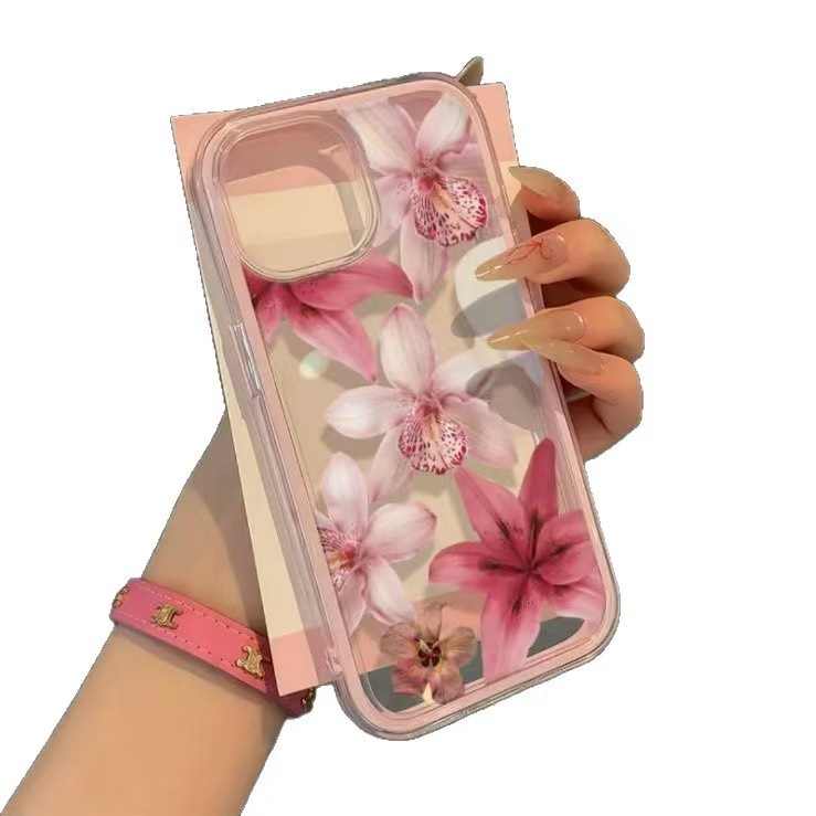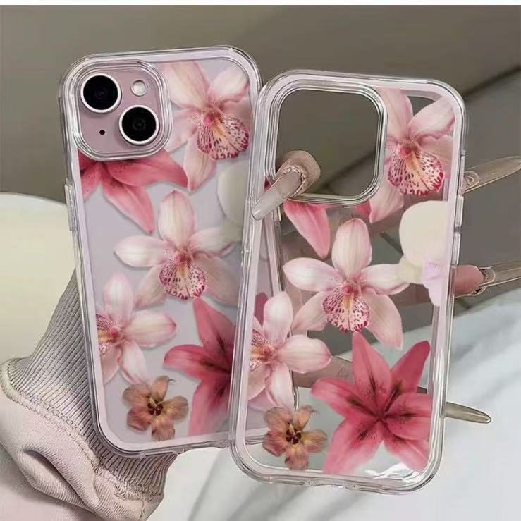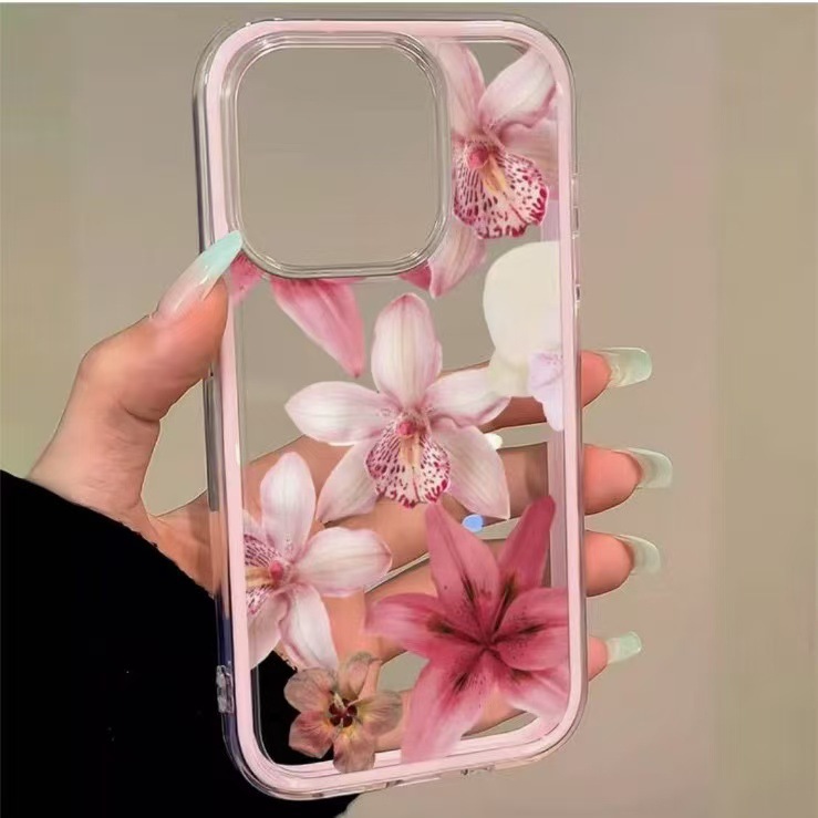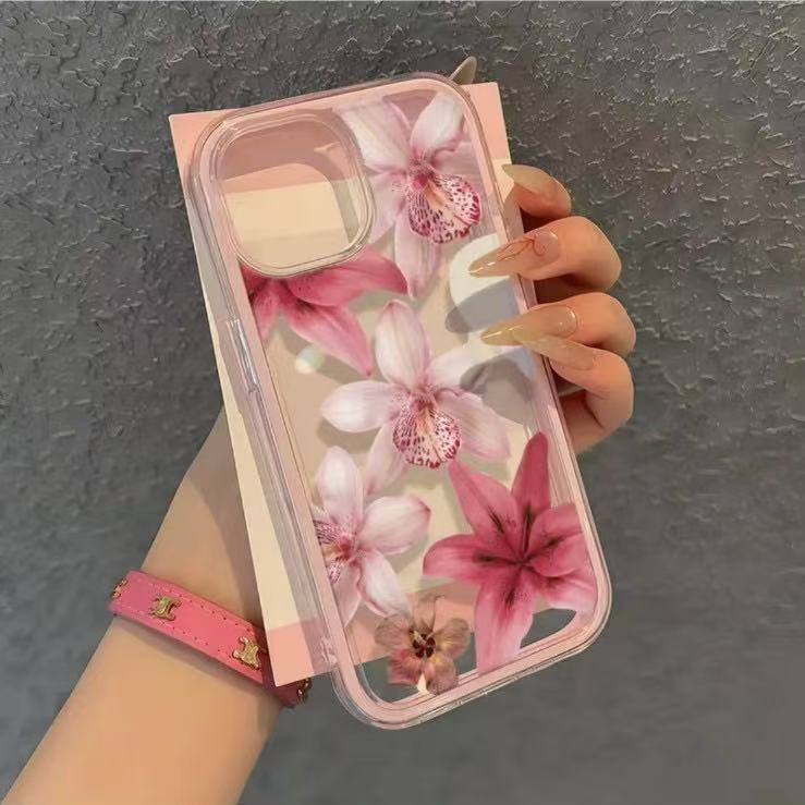玫粉花朵亚克力三合一适用苹果17手机壳15iphone16简约13外贸14