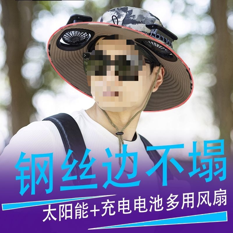 夏季太阳能风扇帽户外登山+USB充电遮阳帽成人钓鱼带风扇的防晒帽
