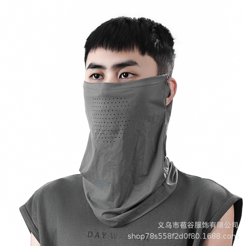 夏季户外防晒冰丝面罩网眼透气速干脖套骑行护颈防尘一体挂耳面巾