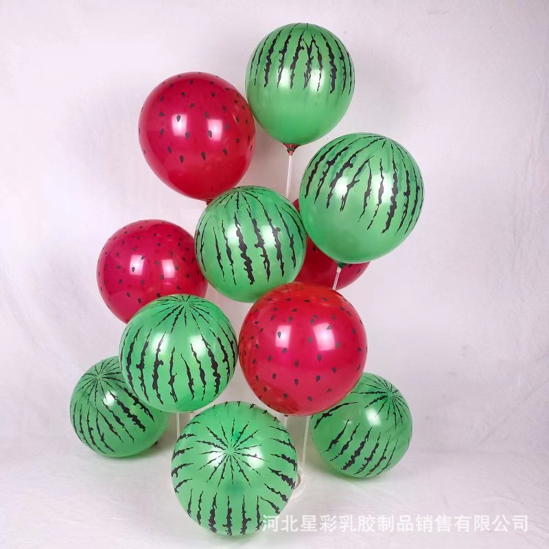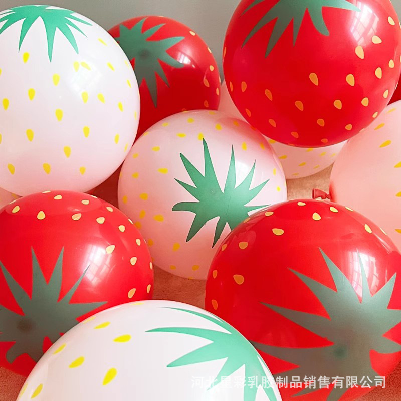 亚马逊批发草莓印花气球12寸网红西瓜籽乳胶气球儿童节节庆装饰品