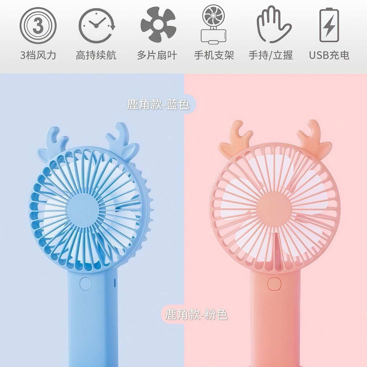 卡通手持充电USB迷你手机支架风扇学生口袋便携式户外礼品赠品
